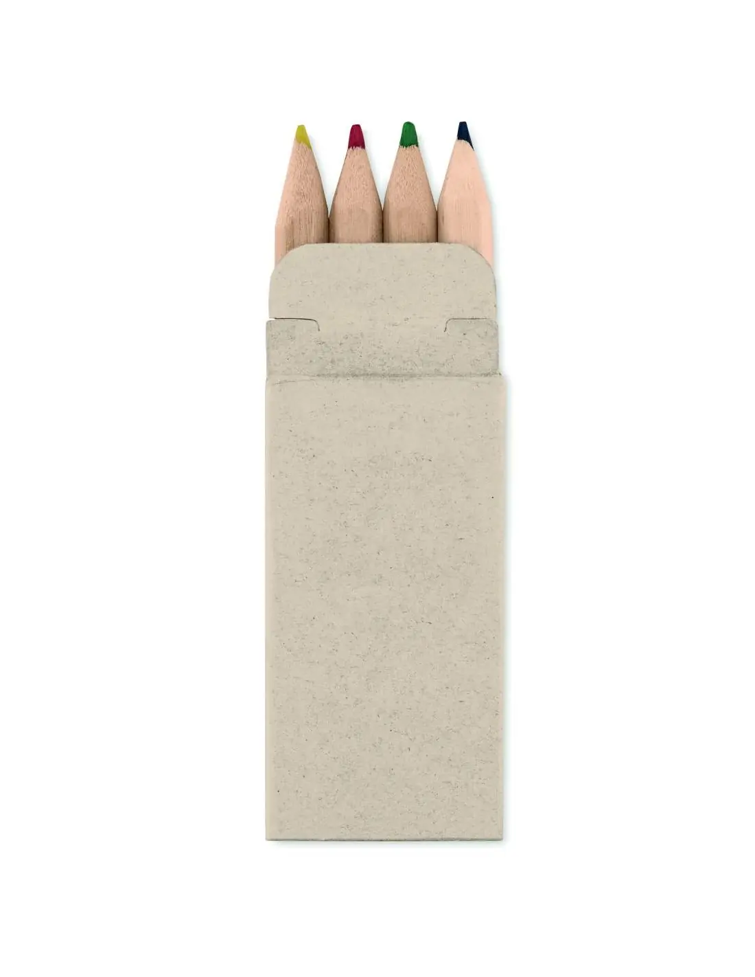 4 minilápices de colores en caja de cartón reciclado.