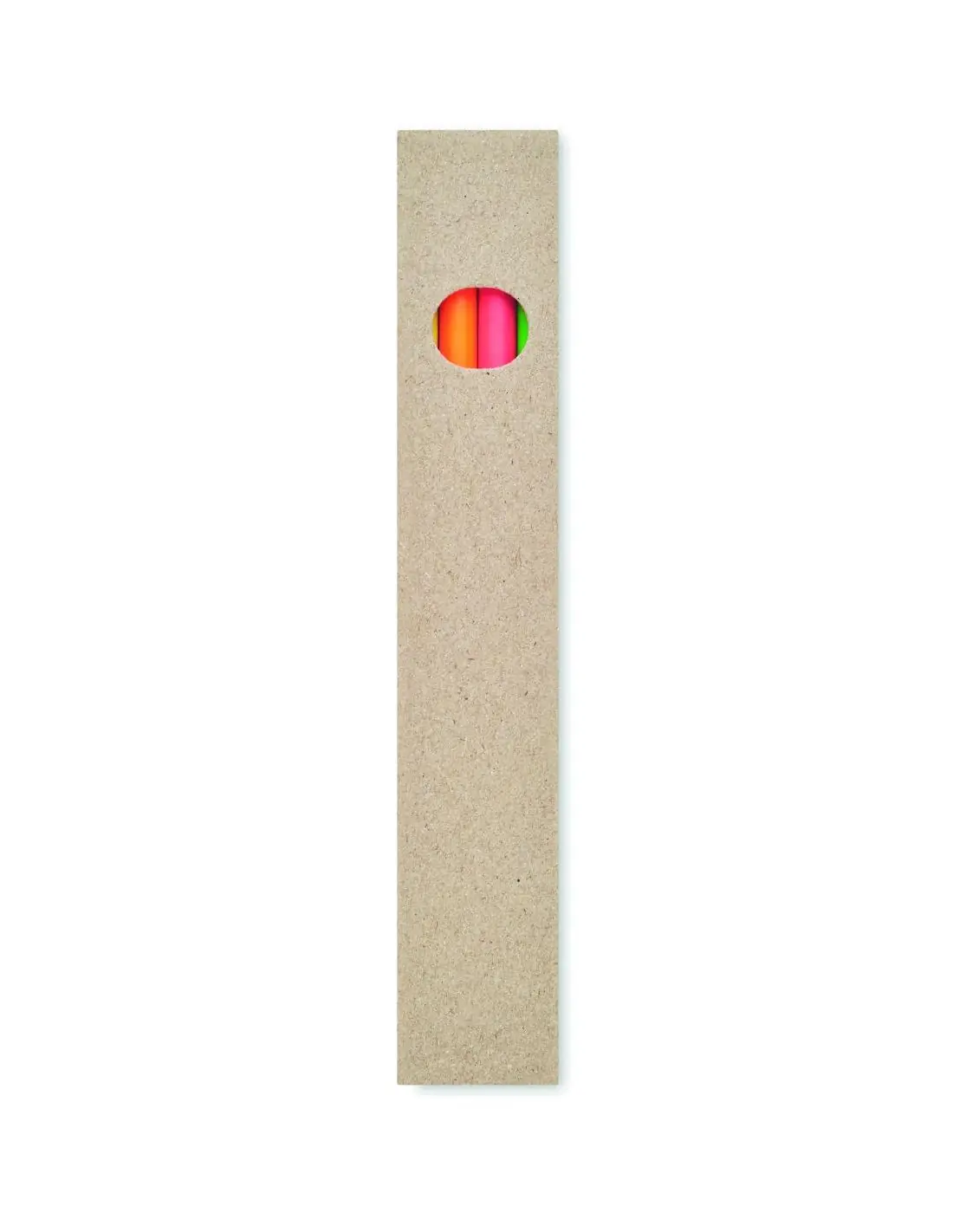 Juego de 4 lápices de colores resaltadores en caja de papel reciclado.