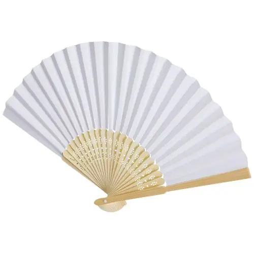 Abanico de bambú y papel, disponible en una amplia gama de colores.