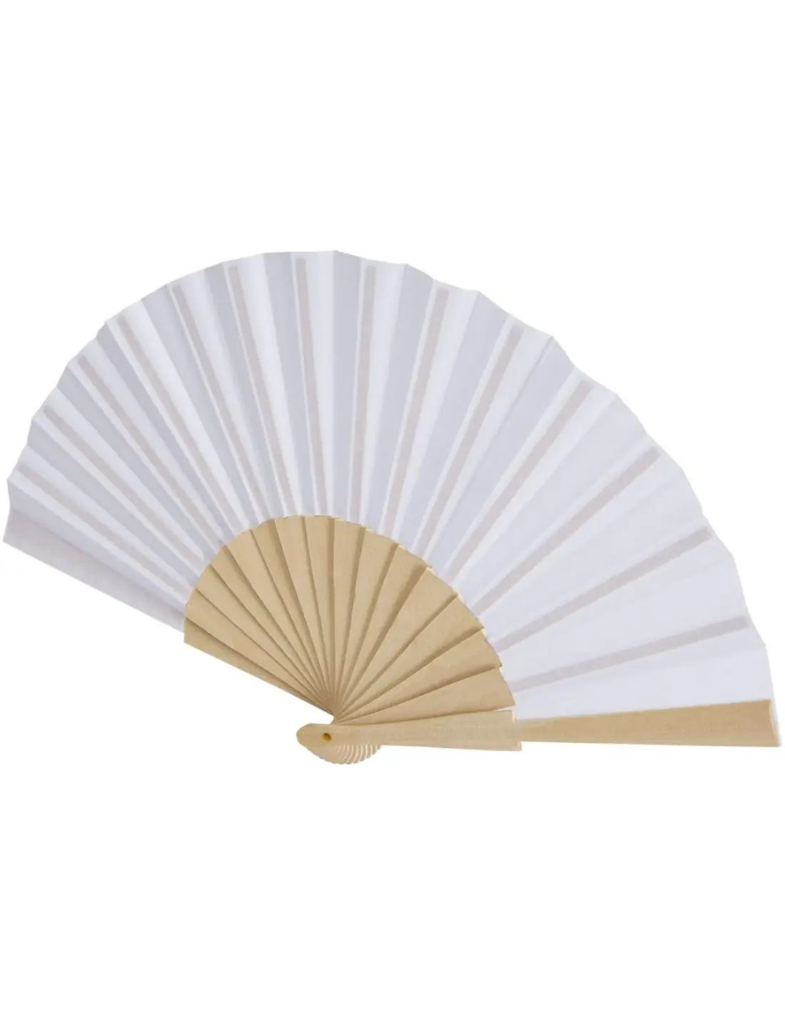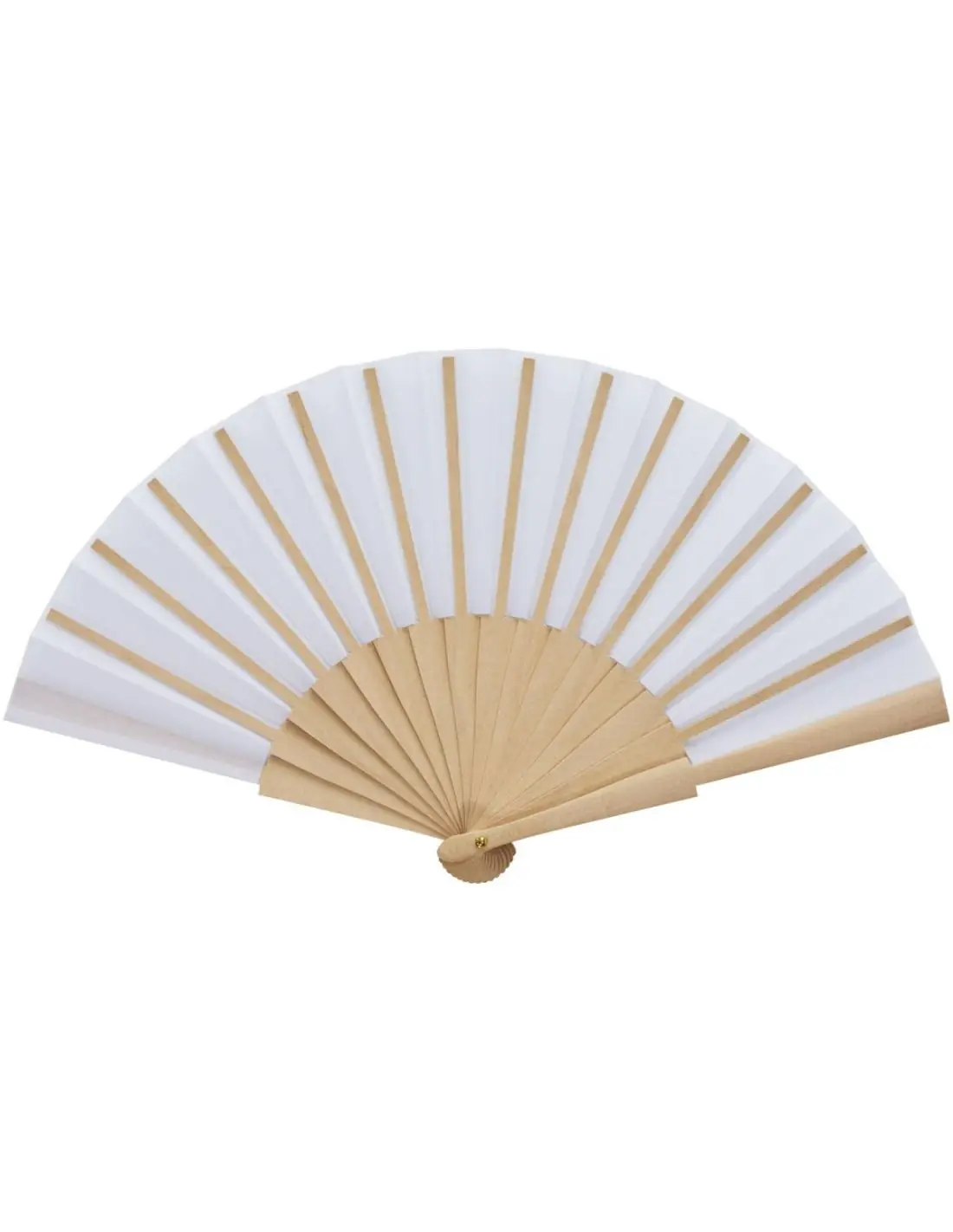 Abanico fabricado en madera y poliéster, disponible en una amplia gama de colores.