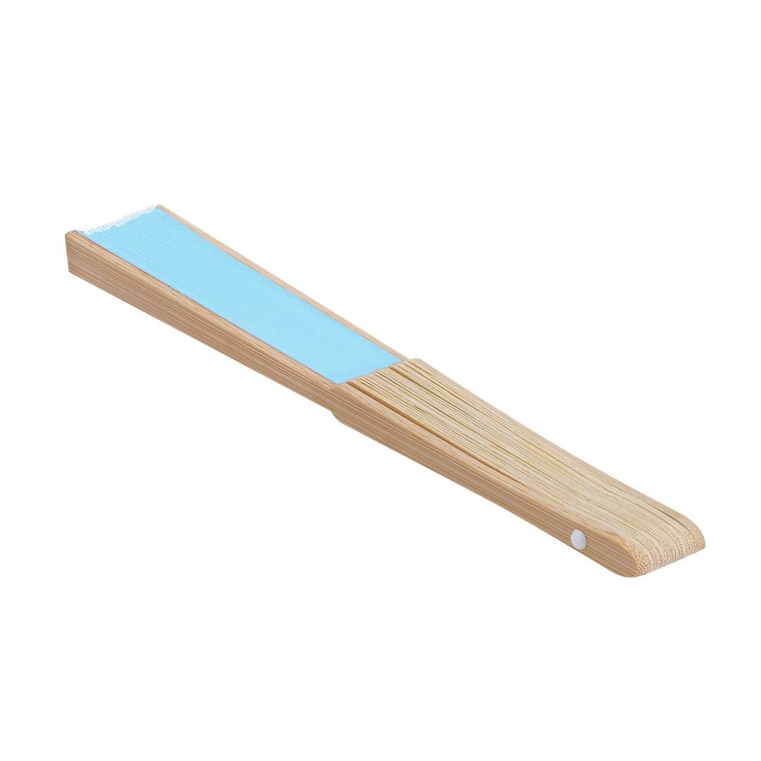 Abanico con varillas fabricadas en resistente bambú. Tela en resistente poliéster 190T.