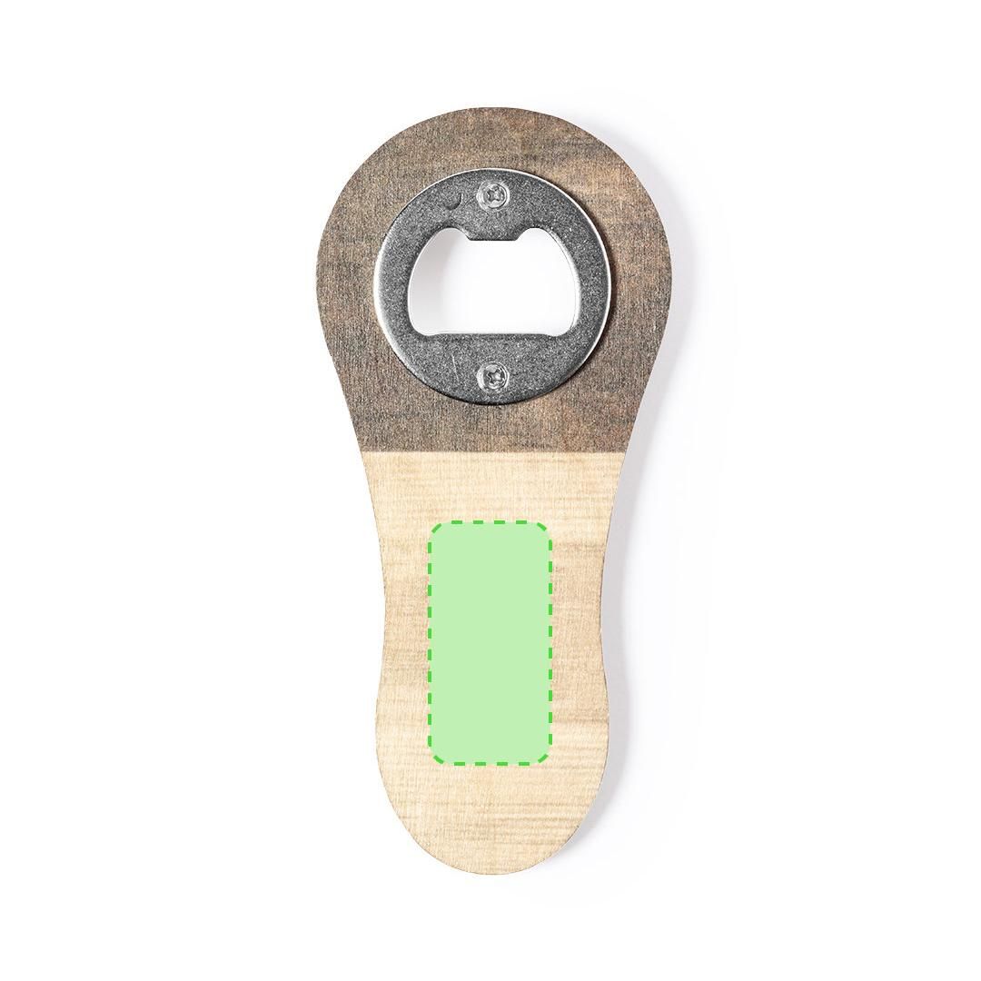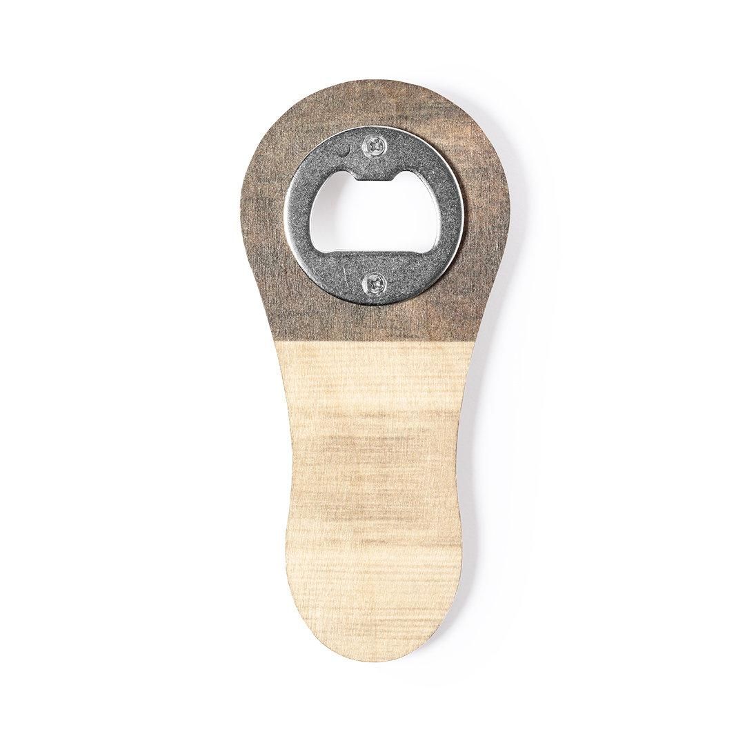 Abridor magnético fabricado en madera natural y de original acabado bicolor. Con mecanismo de apertura metálico, amplia superficie de marcaje y distintivo Made In Europe.