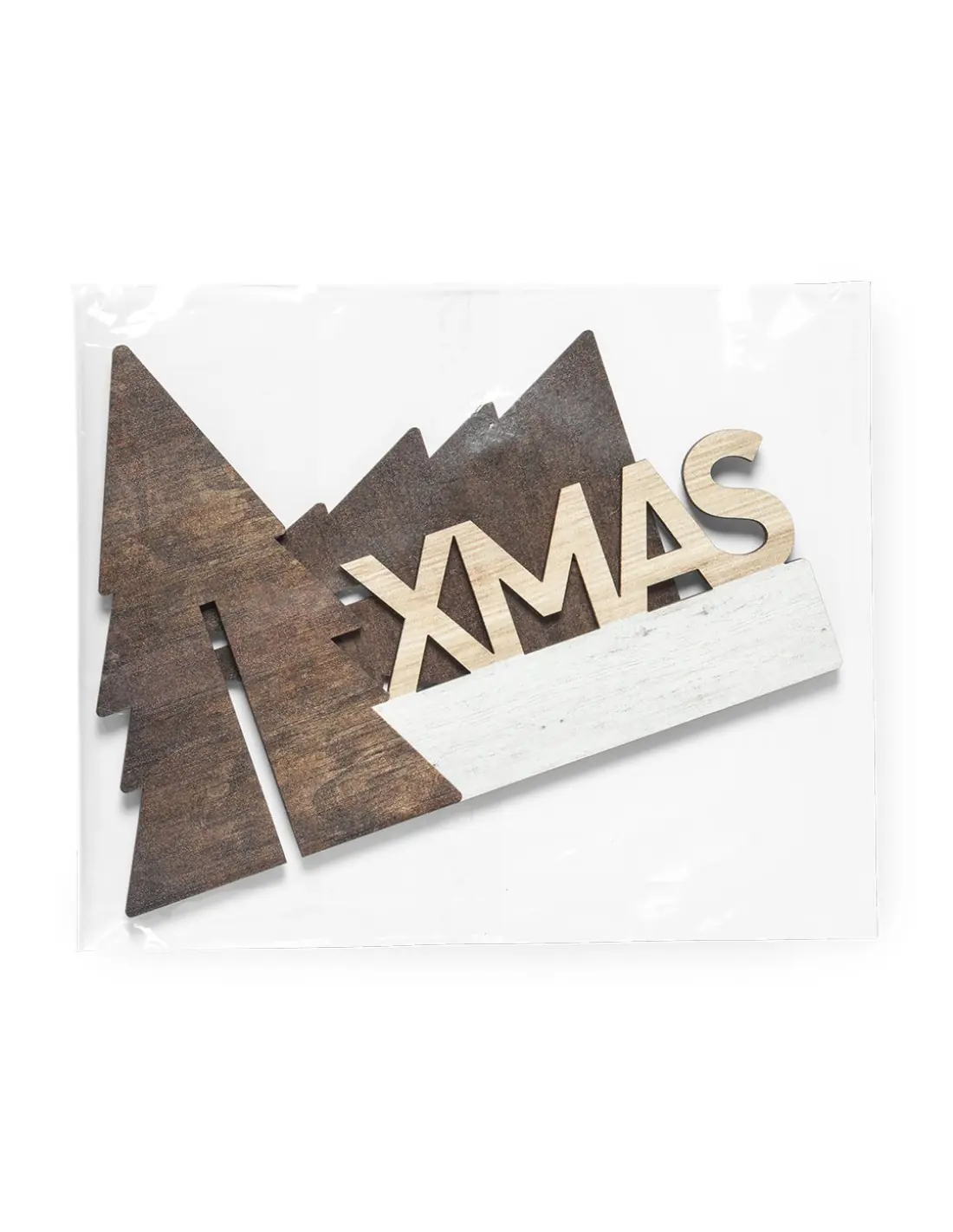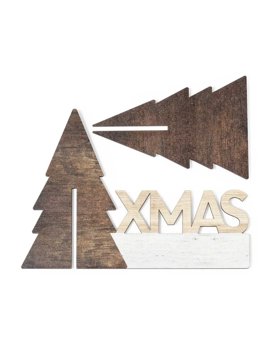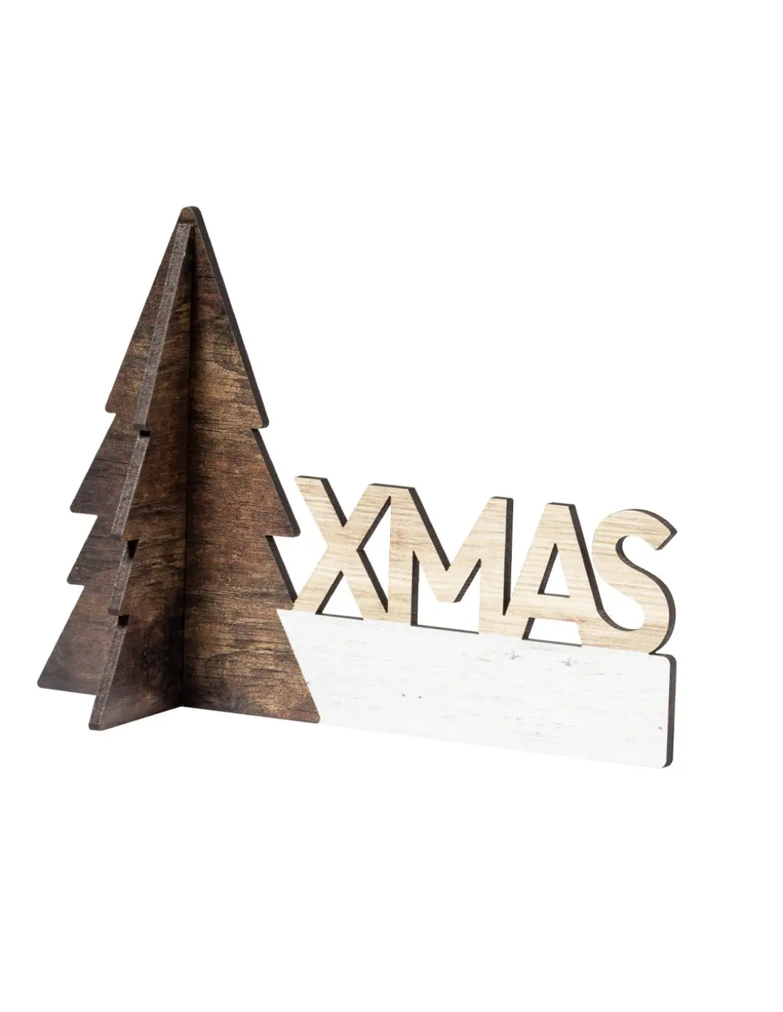 Adorno navideño con diseño árbol de navidad, fabricado en madera natural, con texto XMAS troquelado y de original acabado bicolor. Amplia superficie...