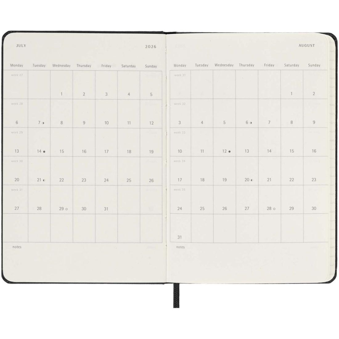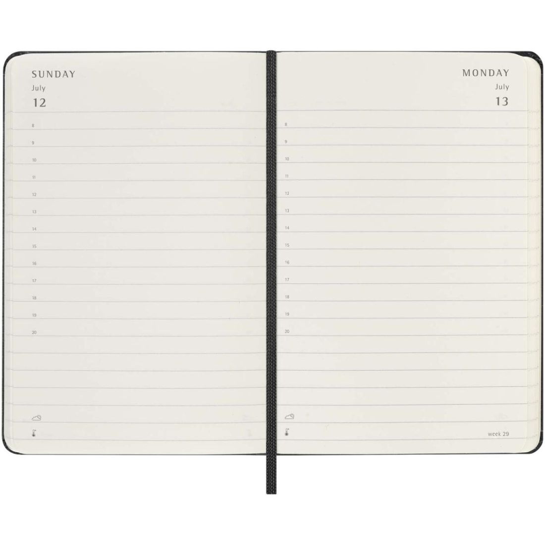 Planifica cada día al detalle con la agenda diaria de 12 meses con tapa dura . Fechada de enero a diciembre de 2026, esta agenda de bolsillo tiene el formato de un día por página, para que dispongas de espacio suficiente para anotar eventos, citas, tareas pendientes, recordatorios y planes. A lo largo del año, se convierte en un registro físico diario de todo lo realizado. Incluye papel color marfil libre de ácidos, un cierre elástico negro, un marcapáginas de cinta, un bolsillo interior extensible de color a conjunto y adhesivos para la personalización, así como adhesivos del año para el lomo.