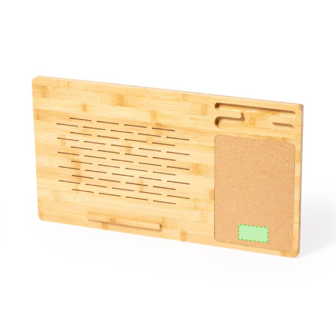 Alfombrilla organizador multifuncional de línea nature. Está fabricada en bambú y corcho natural, ayudando a la sostenibilidad del planeta. Incluye soportes para ordenador portátil, tablets y demás dispositivos móviles. Con alfombrilla para ratón integrada y presentada en caja individual de diseño kraft.