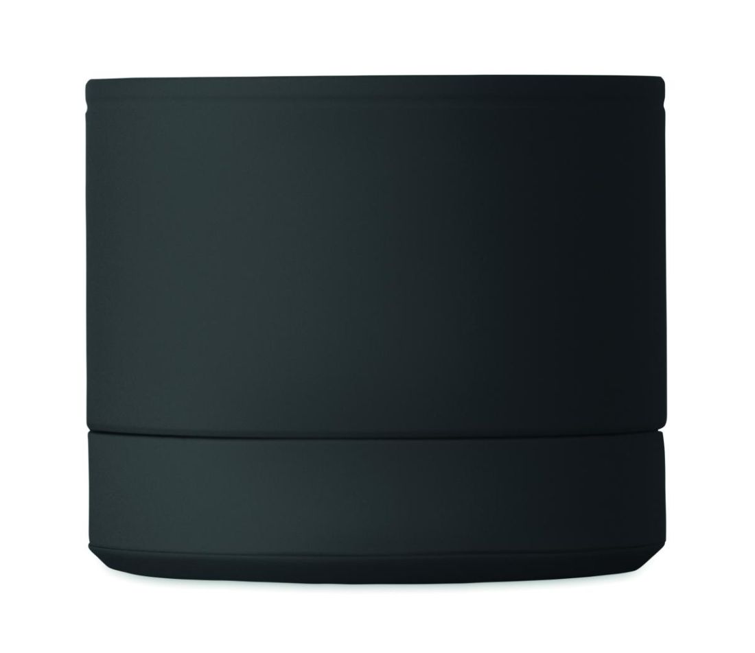 Altavoz 5.1 inalámbrico con cuerpo de metal y acabado de goma. Ofrece monosonido de 3 W. Incluye batería recargable y reemplazable de 500 mAh. Diseño compacto y moderno.