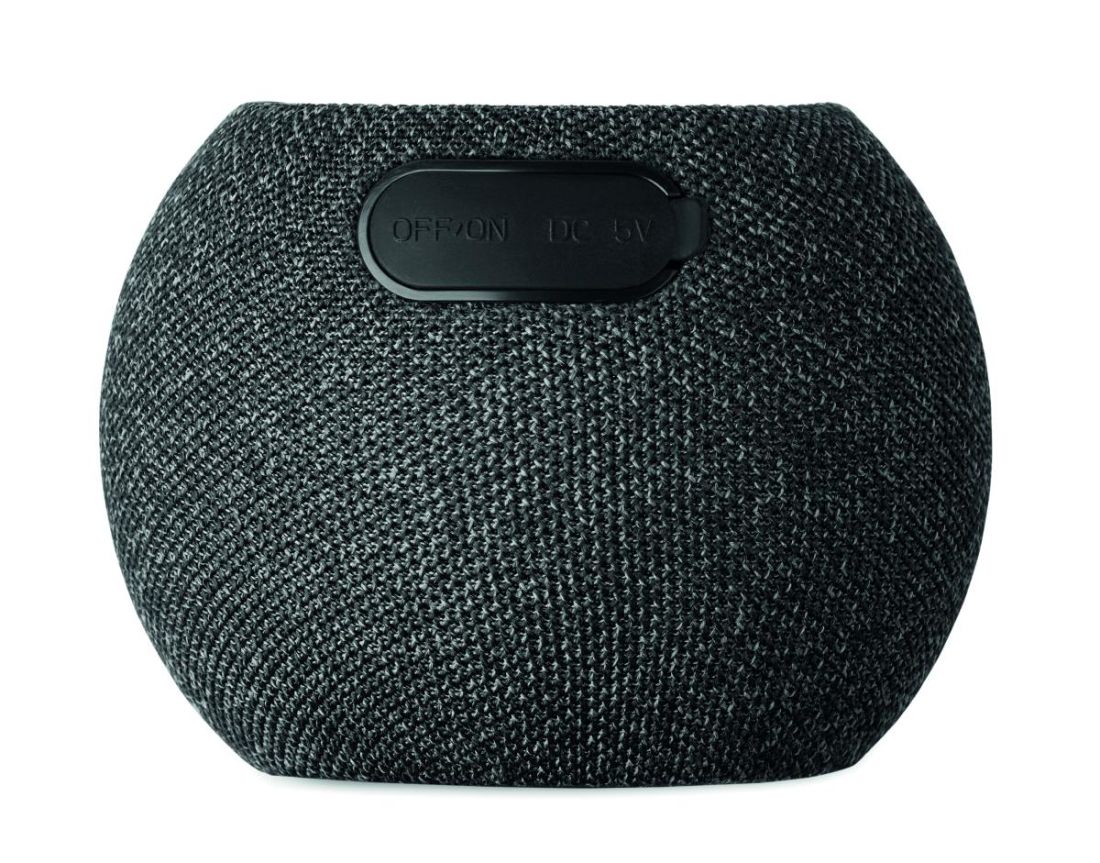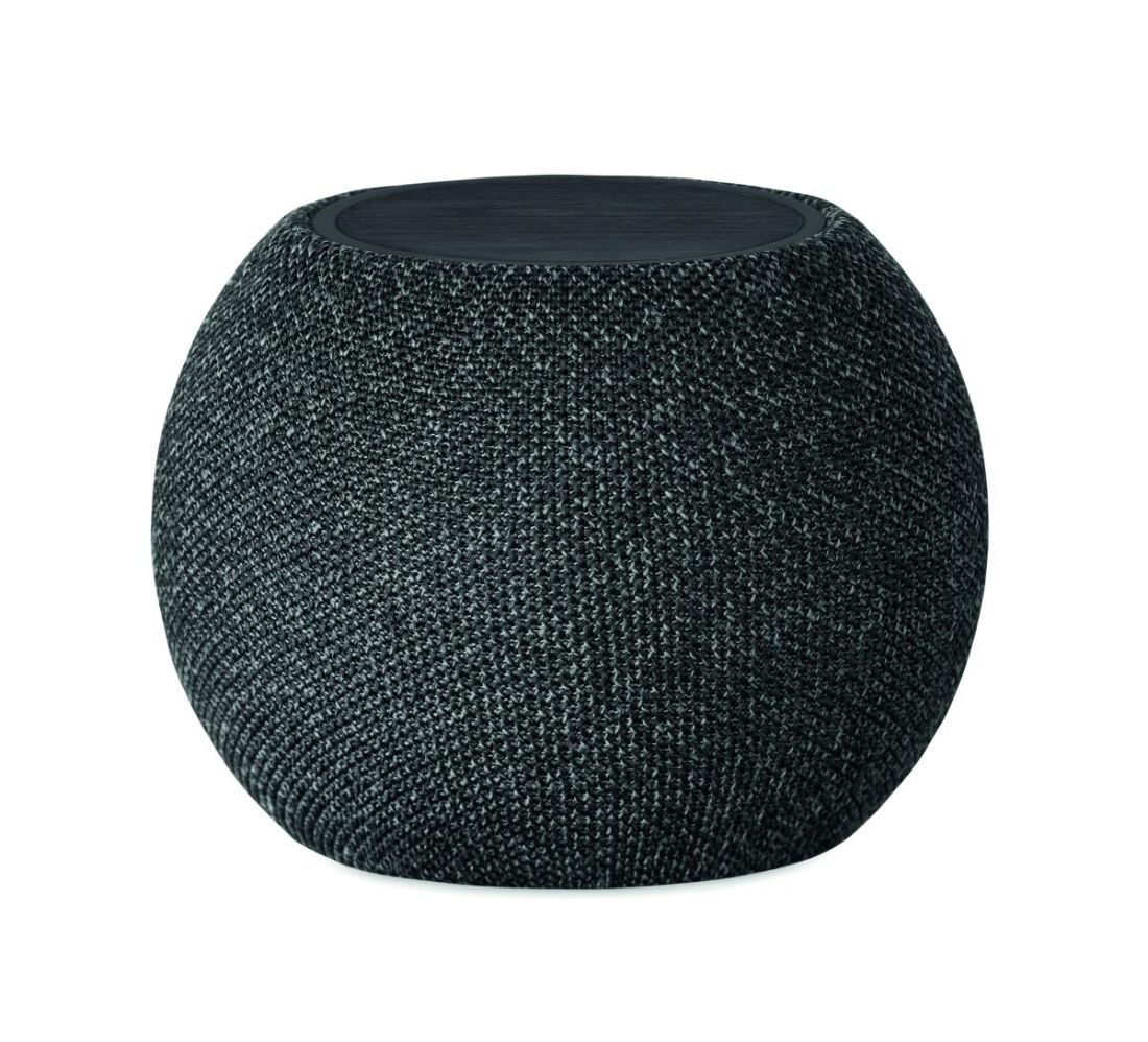 Altavoz inalámbrico 5.0 y carga inalámbrica de 15 W en ABS y tejido RPET y detalle negro de bambú en la parte superior. Incluye 1 batería recargabl…