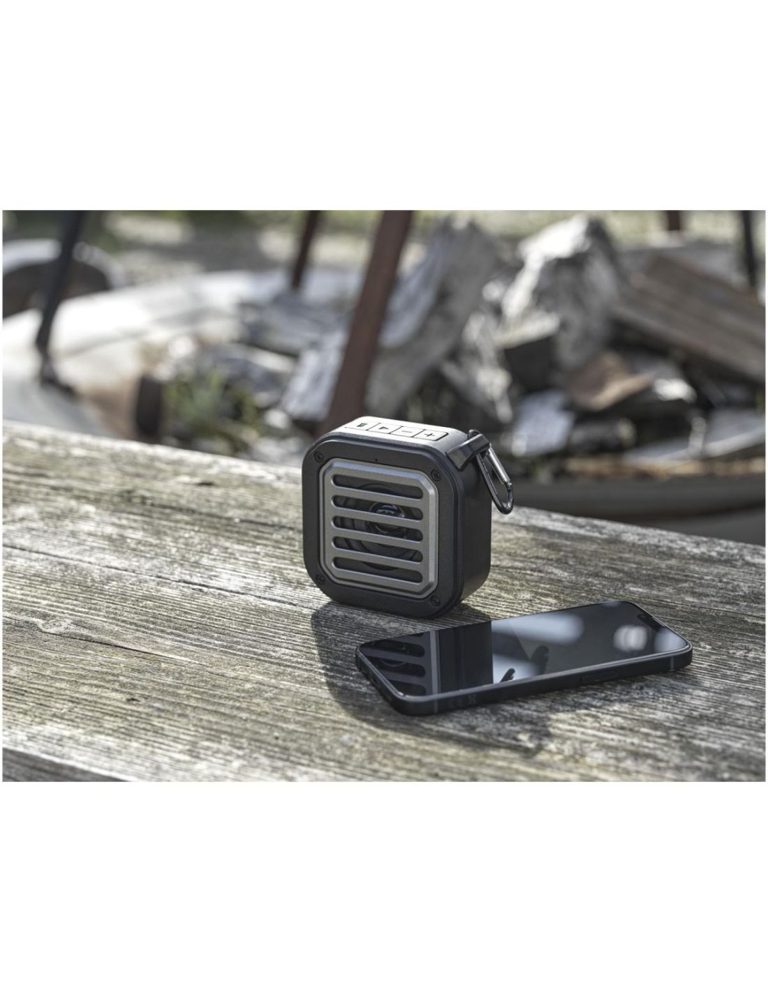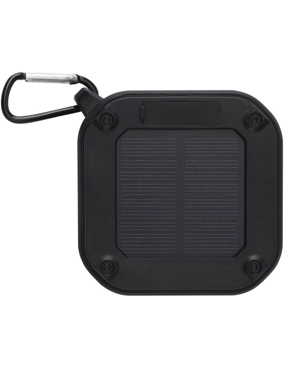 Altavoz solar Bluetooth IPX5 de 3W con mosquetón en plástico reciclado con certificación RCS Ecológico Personalizado 6124347