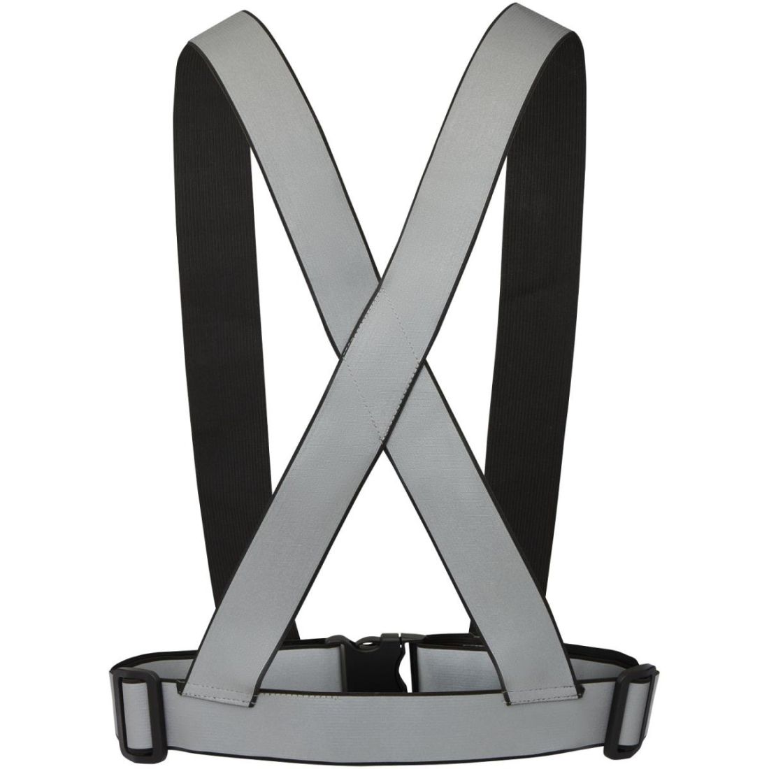 Arnés y chaleco de seguridad reflectante fabricado con tejido de banda elástica ultraligero y cómodo, con una parte reflectante de 3,5 cm de ancho tanto en el anverso como en el reverso. Las bandas elásticas y la hebilla son ajustables para que el chaleco se adapte correctamente. Las rayas reflectantes se iluminan en la oscuridad para ser claramente visible en todo momento. Ideal para usarlo al montar en bicicleta, correr o caminar. Estas prendas llevan la marca CE para demostrar el cumplimiento del Reglamento (UE) 2016/425 relativo a los equipos de protección individual, categoría II.
