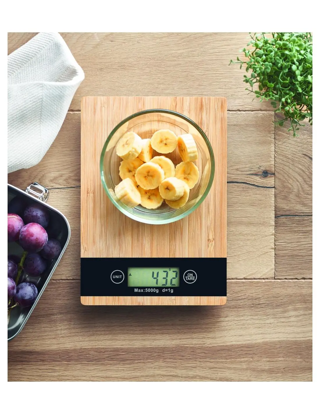 Báscula de cocina digital fabricada en bambú. Perfecta para pesar los ingredientes y los alimentos en la cocina cuando estés horneando un pastel o …