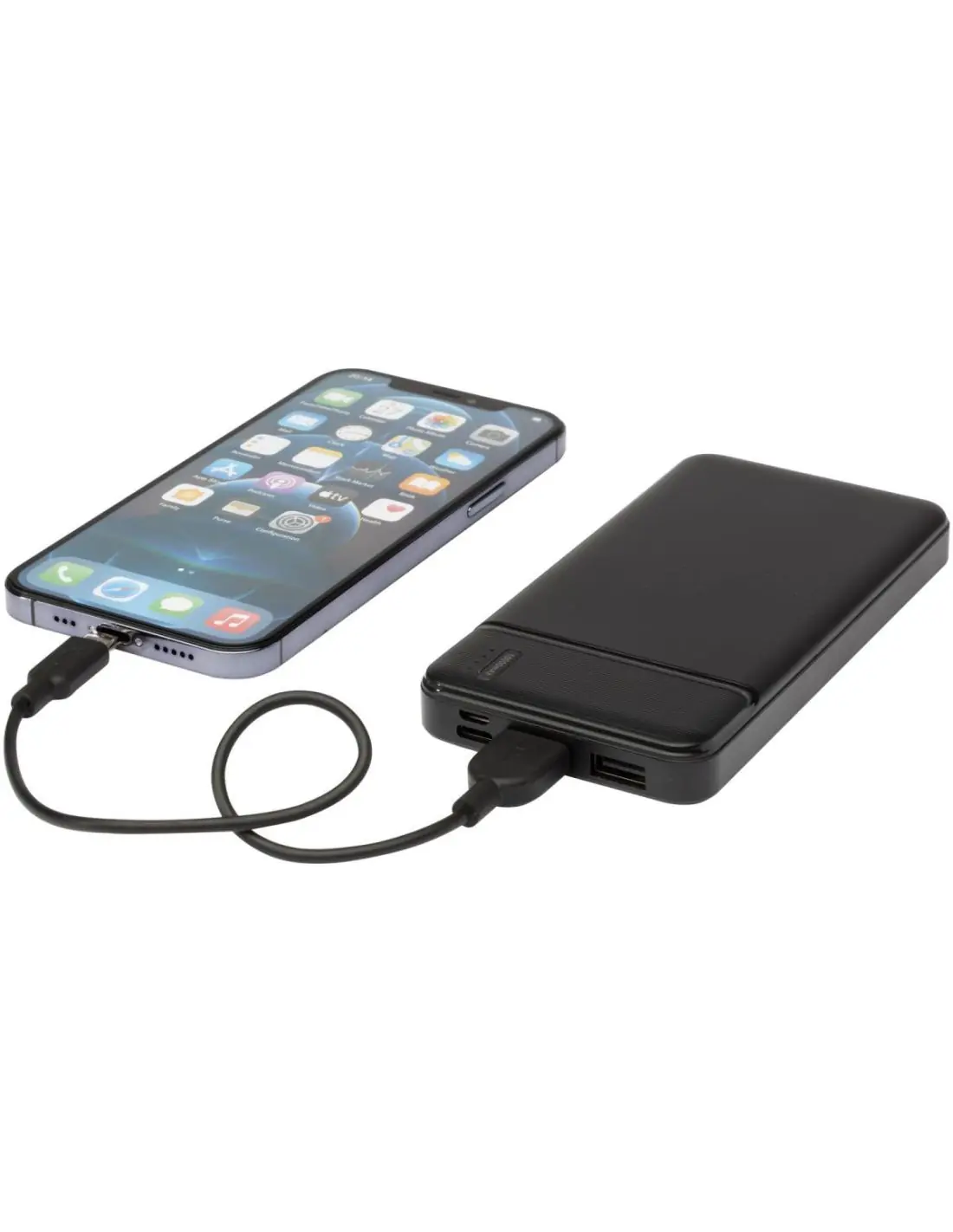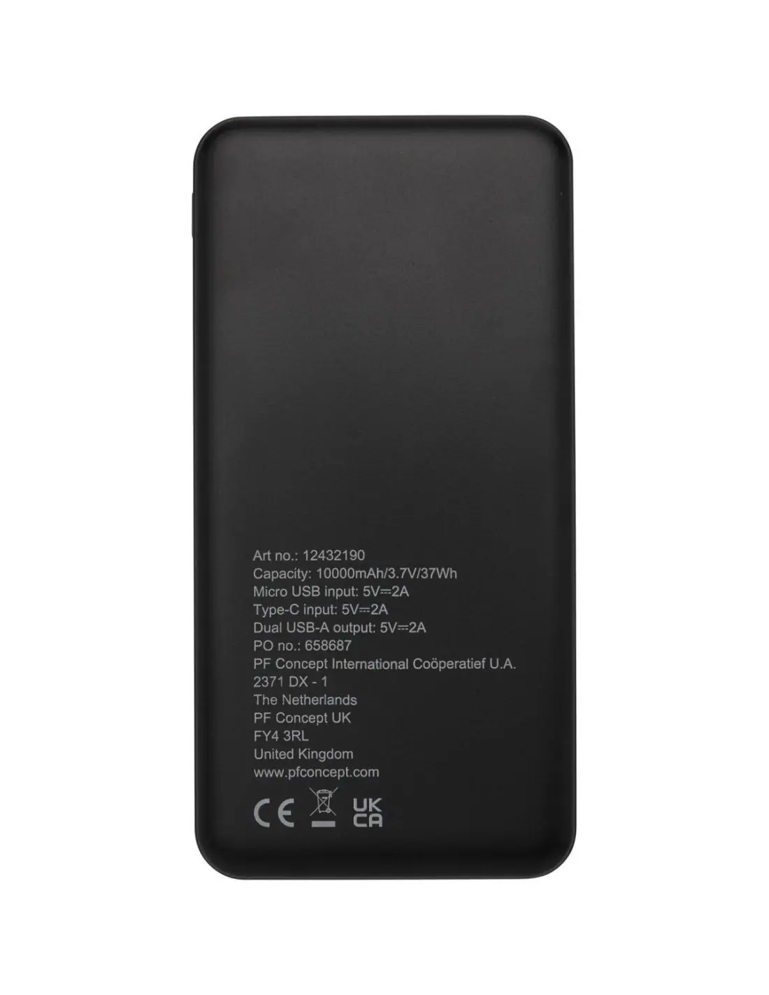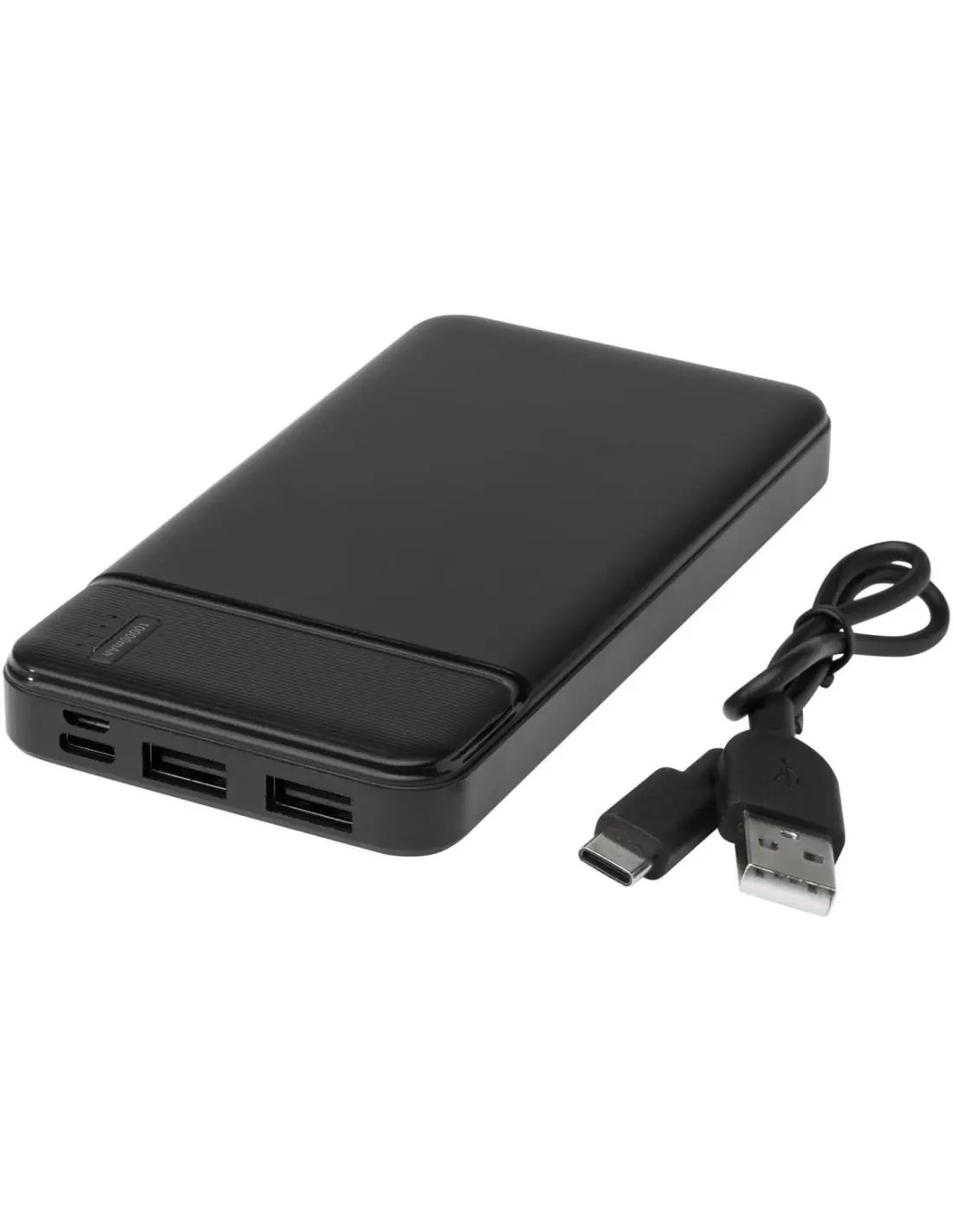 Batería externa fabricada en plástico ABS reciclado. La fuente de alimentación contiene una batería de polímero de litio de grado A 10.000 mAh de larga duración para una carga más rápida. Los indicadores de potencia indicarán el nivel de energía restante para que siempre sepas cuándo hay que recargar. Entrada Type-C 5V/2A, entrada Micro USB 5V/2A, salida dual USB-A 5V/2A, potencia total 10W. Se entrega con un cable de carga de TPE 2A USB-A a Type-C de 30 cm, un manual de instrucciones y una caja de regalo de papel kraft.