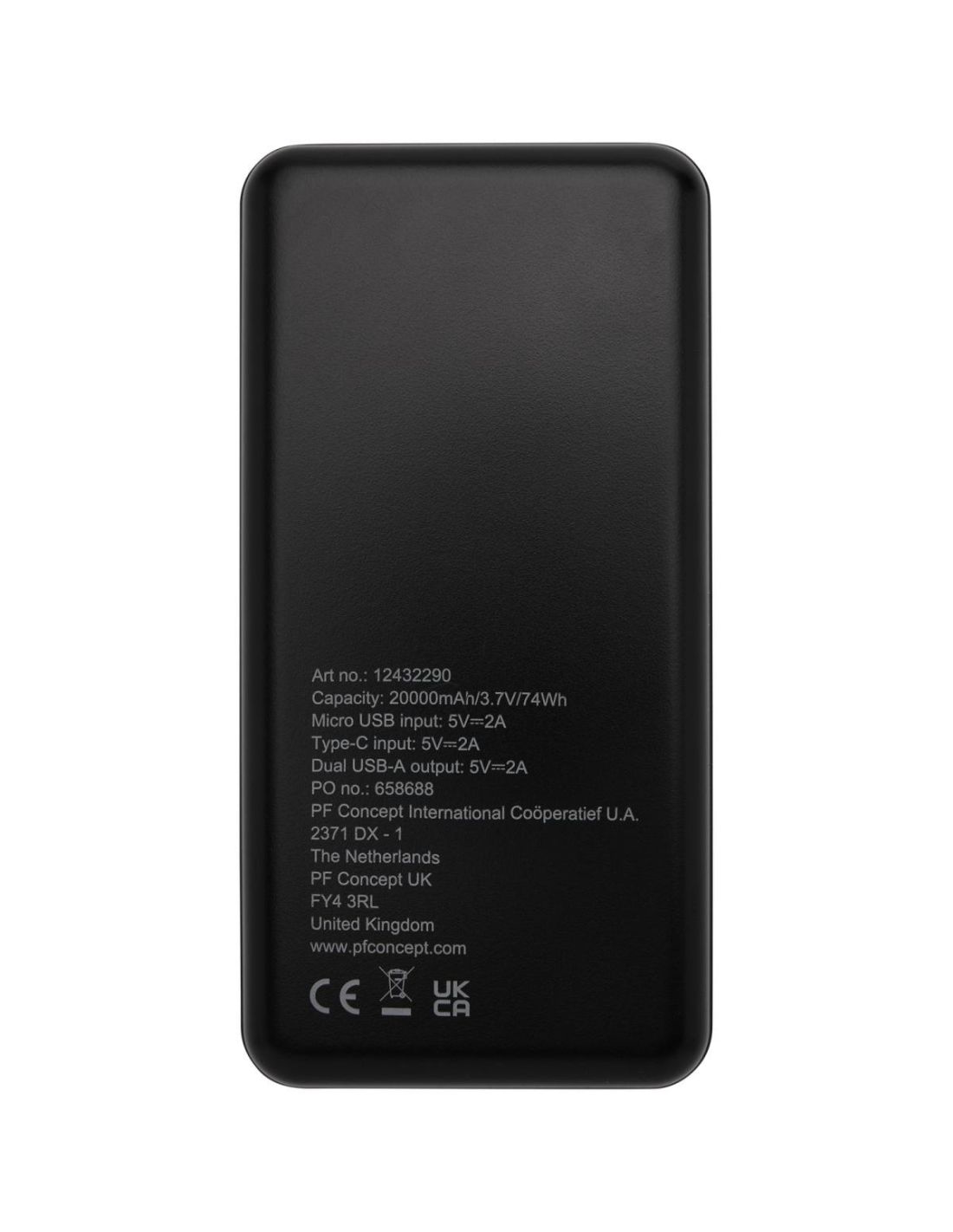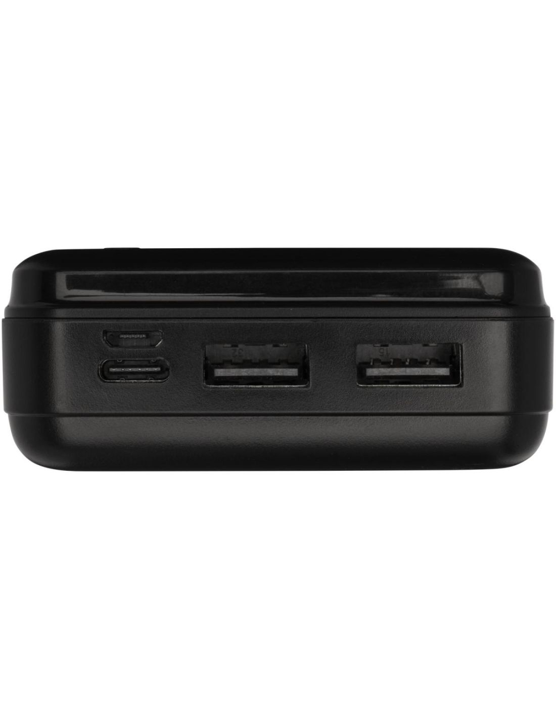 Batería externa fabricada en plástico ABS reciclado. La fuente de alimentación contiene una batería de polímero de litio de grado A de 20.000 mAh de larga duración para una carga más rápida. Los indicadores de potencia indicarán el nivel de energía restante para que siempre sepas cuando debes recargar. Entrada Type-C 5V/2A, entrada Micro USB 5V/2A, salida dual USB-A 5V/2A, potencia total 10W. Se entrega con un cable de carga de TPE 2A USB-A a Type-C de 30 cm, un manual de instrucciones y una caja de regalo de papel kraft.