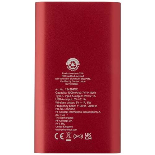 Batería externa inalámbrica tipo C de aluminio reciclado de 4000 mAh Ecológica Personalizada 6124384