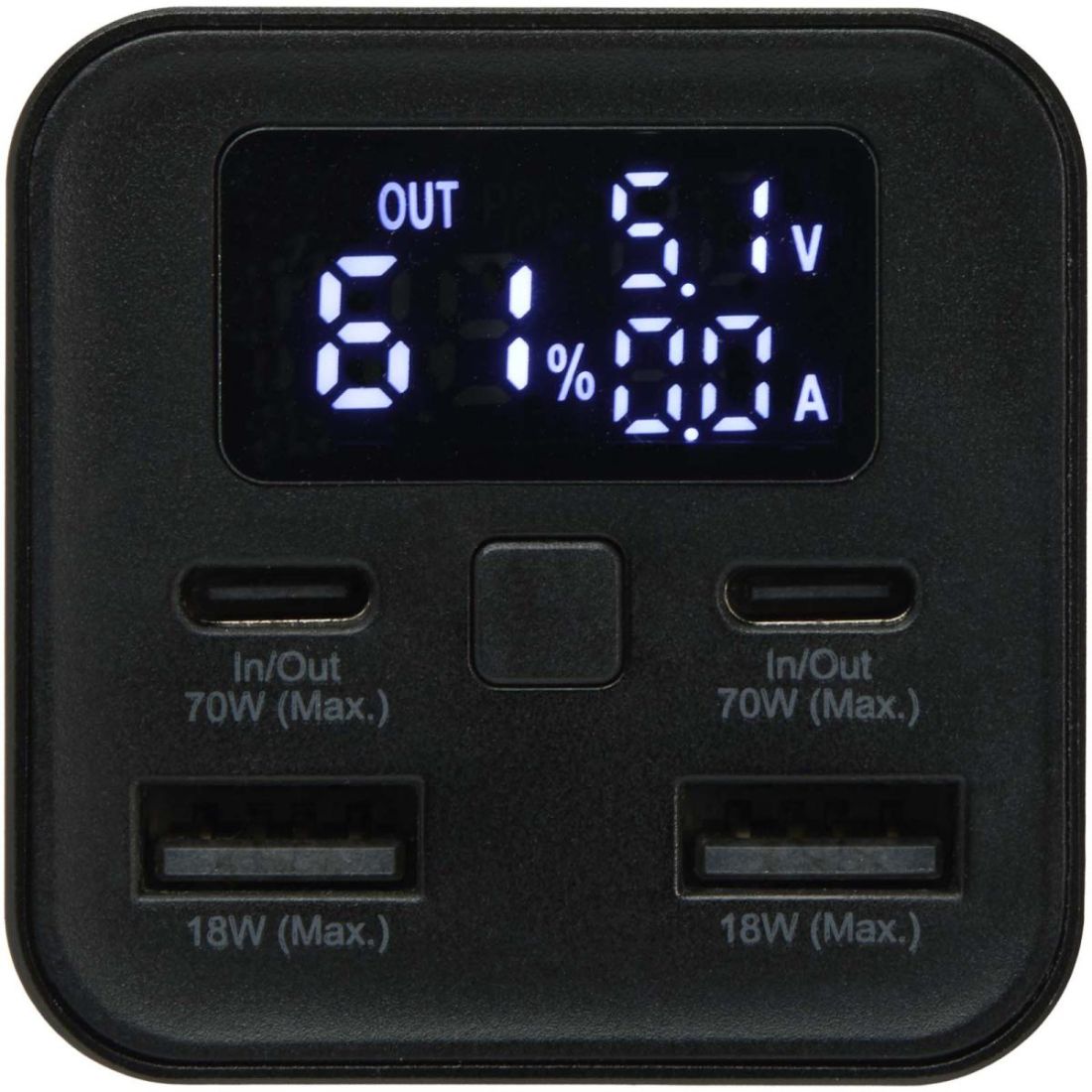 Mantén la energía mientras te desplazas con la batería externa de 20 000 mAh, fabricada con aluminio reciclado. Diseñada para ofrecer versatilidad, cuenta con dos puertos tipo C de alta velocidad de 70 W y dos puertos USB-A de 18 W, por lo que es perfecta para cargar la mayoría de portátiles, tabletas y smartphones. La pantalla integrada muestra información sobre la potencia en tiempo real, incluido el porcentaje de carga y los datos de suministro de potencia. Se incluye un cable tipo C de 70 W, por lo que podrás cargar tus dispositivos o recargar la batería externa nada más sacarla de la caja.