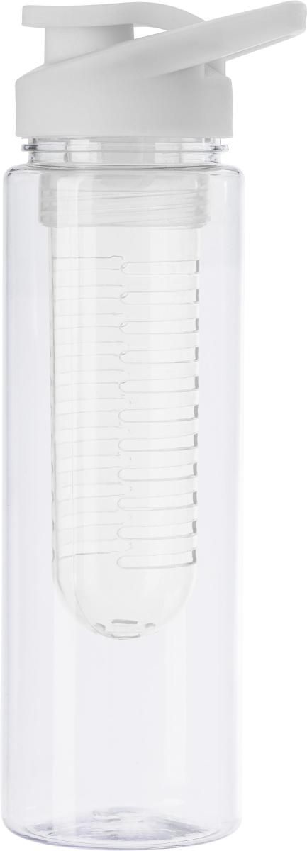 Bidón de Tritán (700 ml) con infusor para frutas. El tapón de rosca incluye una apertura para beber. Recomendable para uso de agua fría. Evitar bebidas ácidas o con gas.