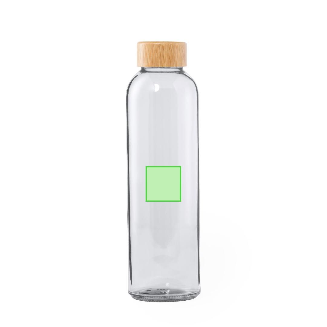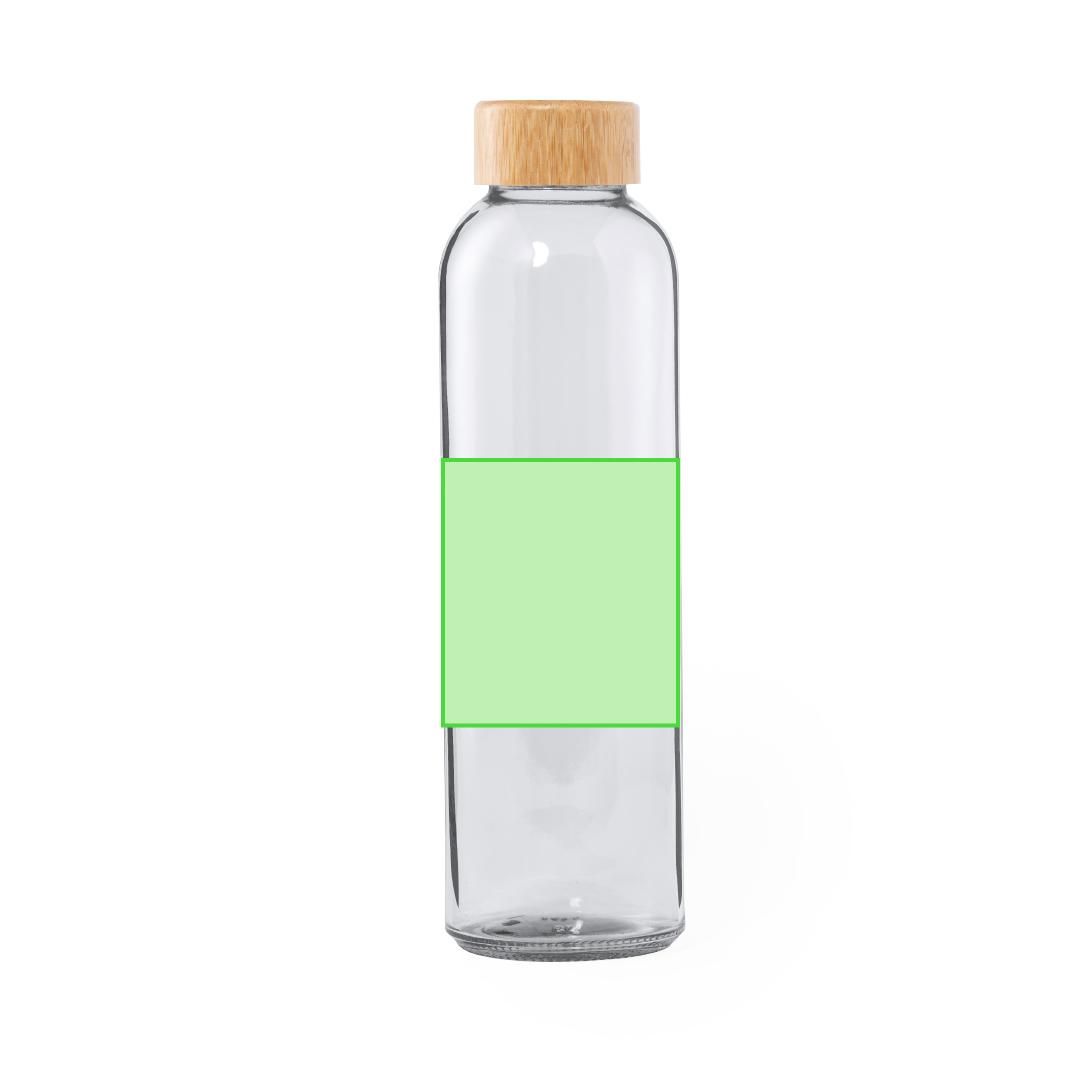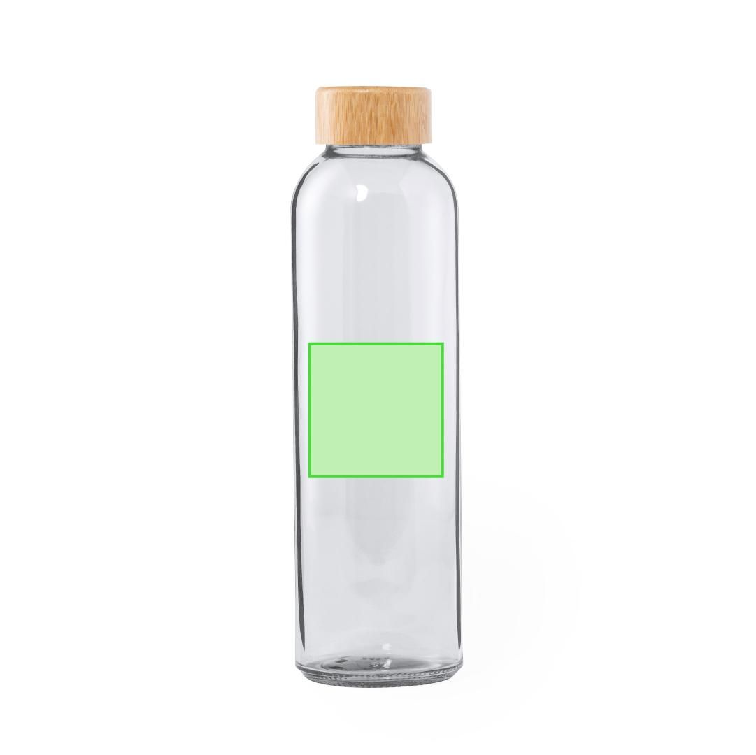 Bidón transparente de cristal de 500 ml de capacidad, con tapón a rosca en bambú y libre de BPA. Presentado en atractiva caja de diseño kraft.