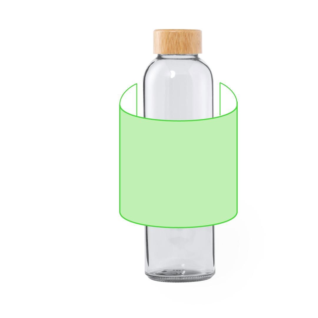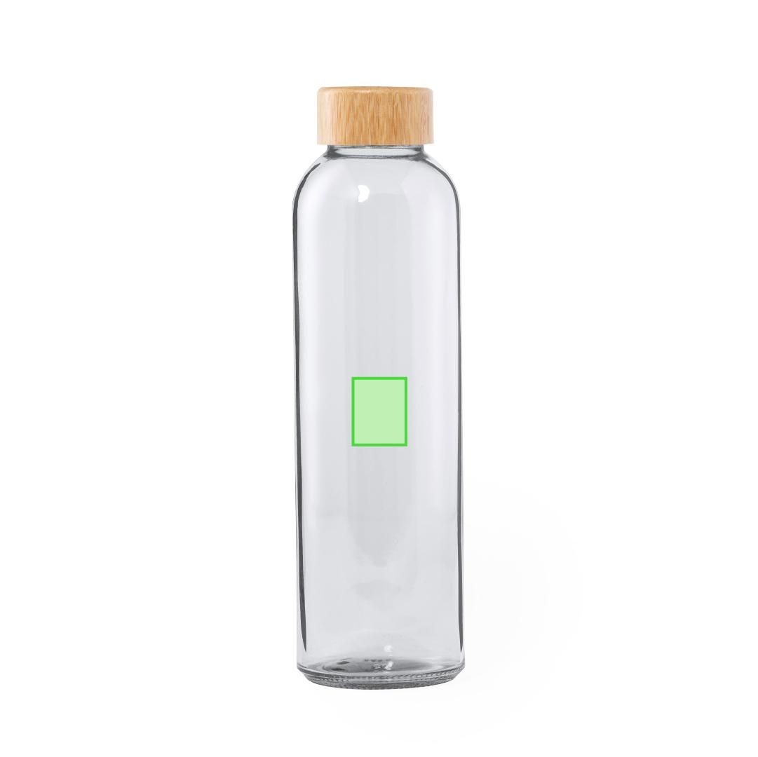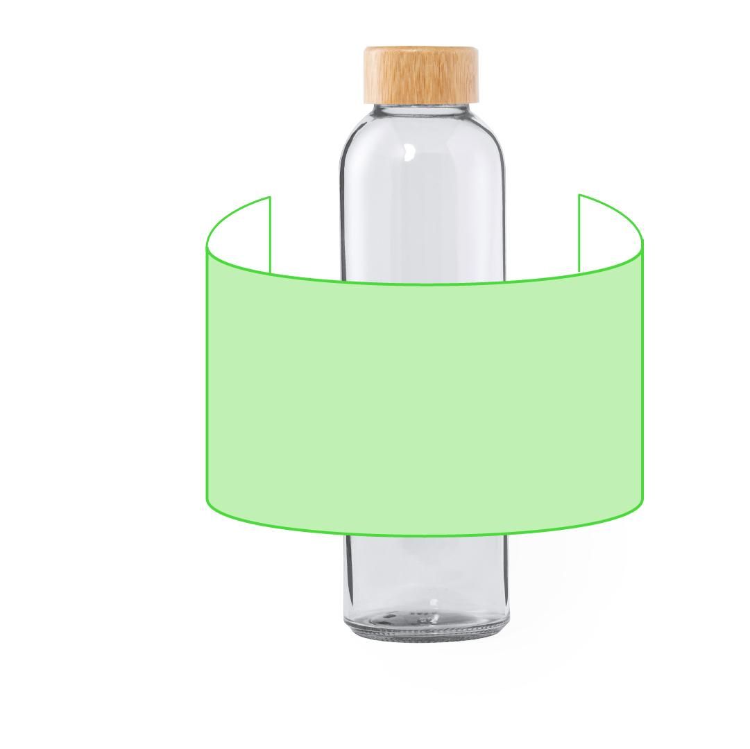 Bidón transparente de cristal de 500 ml de capacidad, con tapón a rosca en bambú y libre de BPA. Presentado en atractiva caja de diseño kraft.