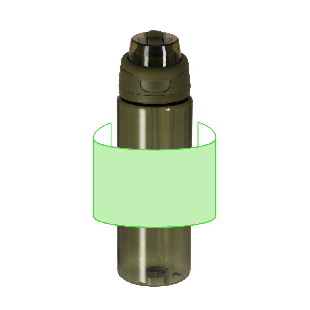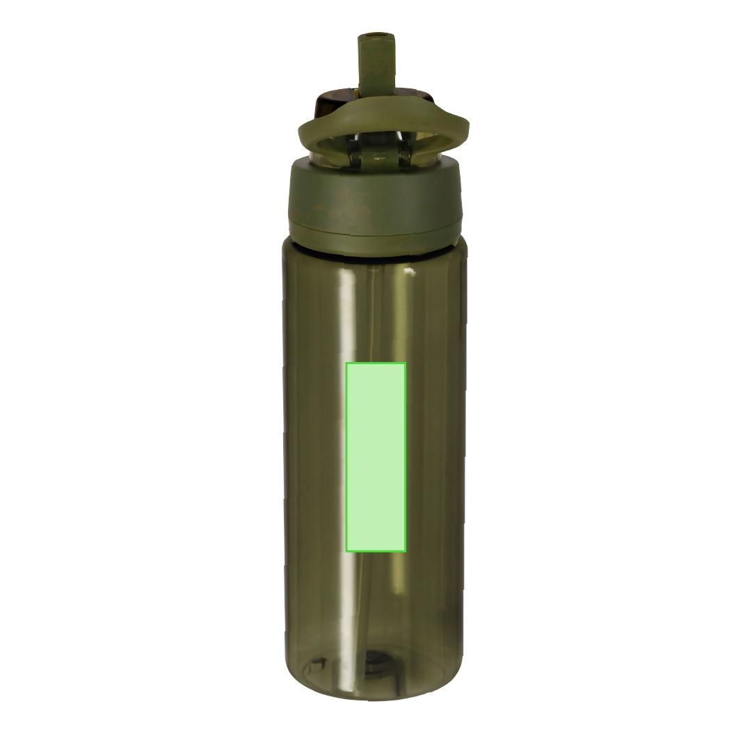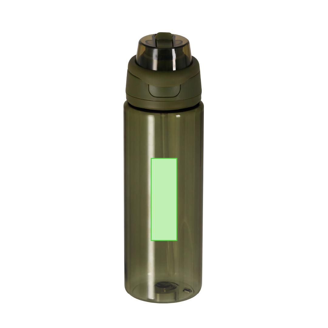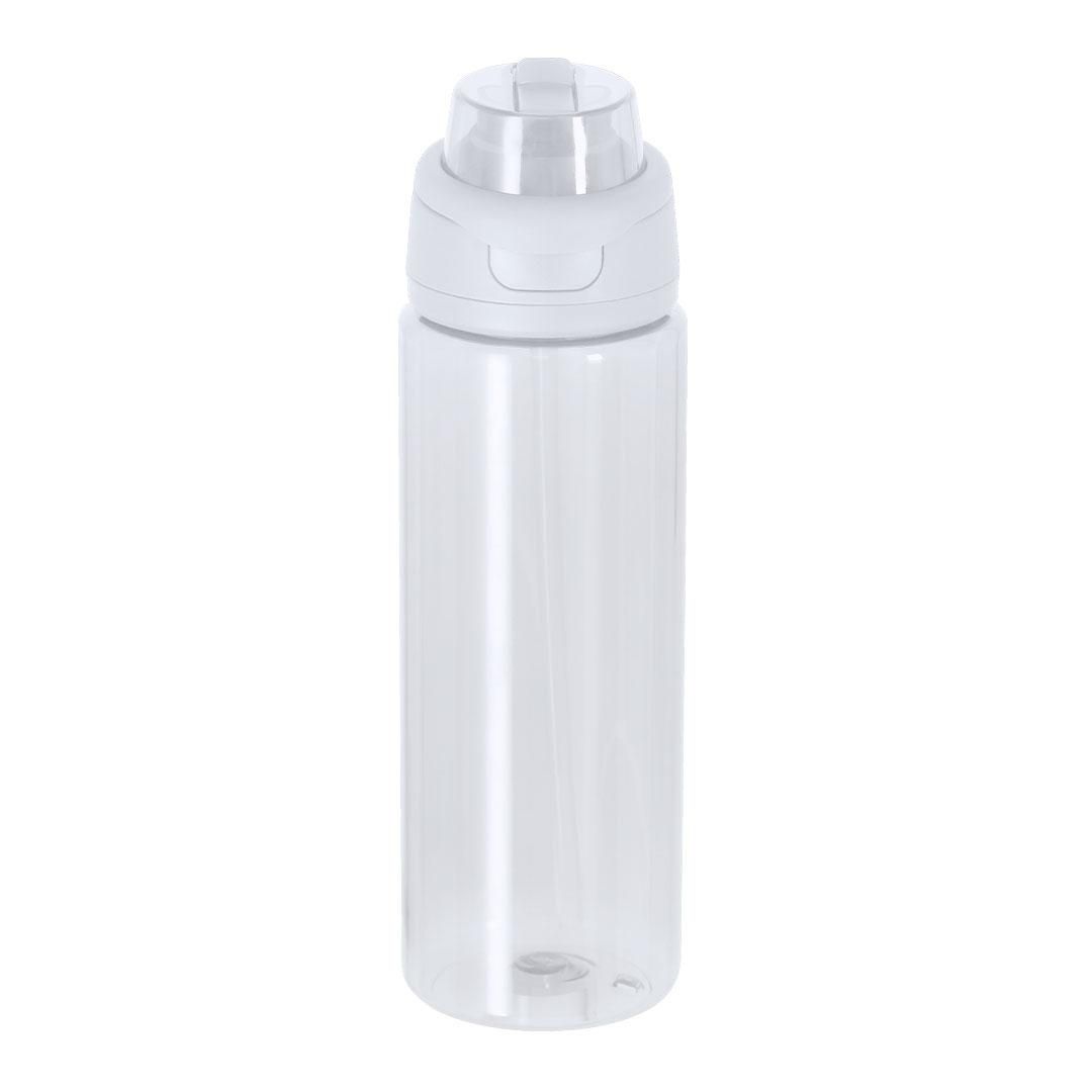 Bidón de 750ml de capacidad, fabricado en resistente RPET y en acabado translúcido. Con doble sistema de bebida, pajita y orificio de bebida. Tapa de cierre push y asa plegable. Libre de BPA.