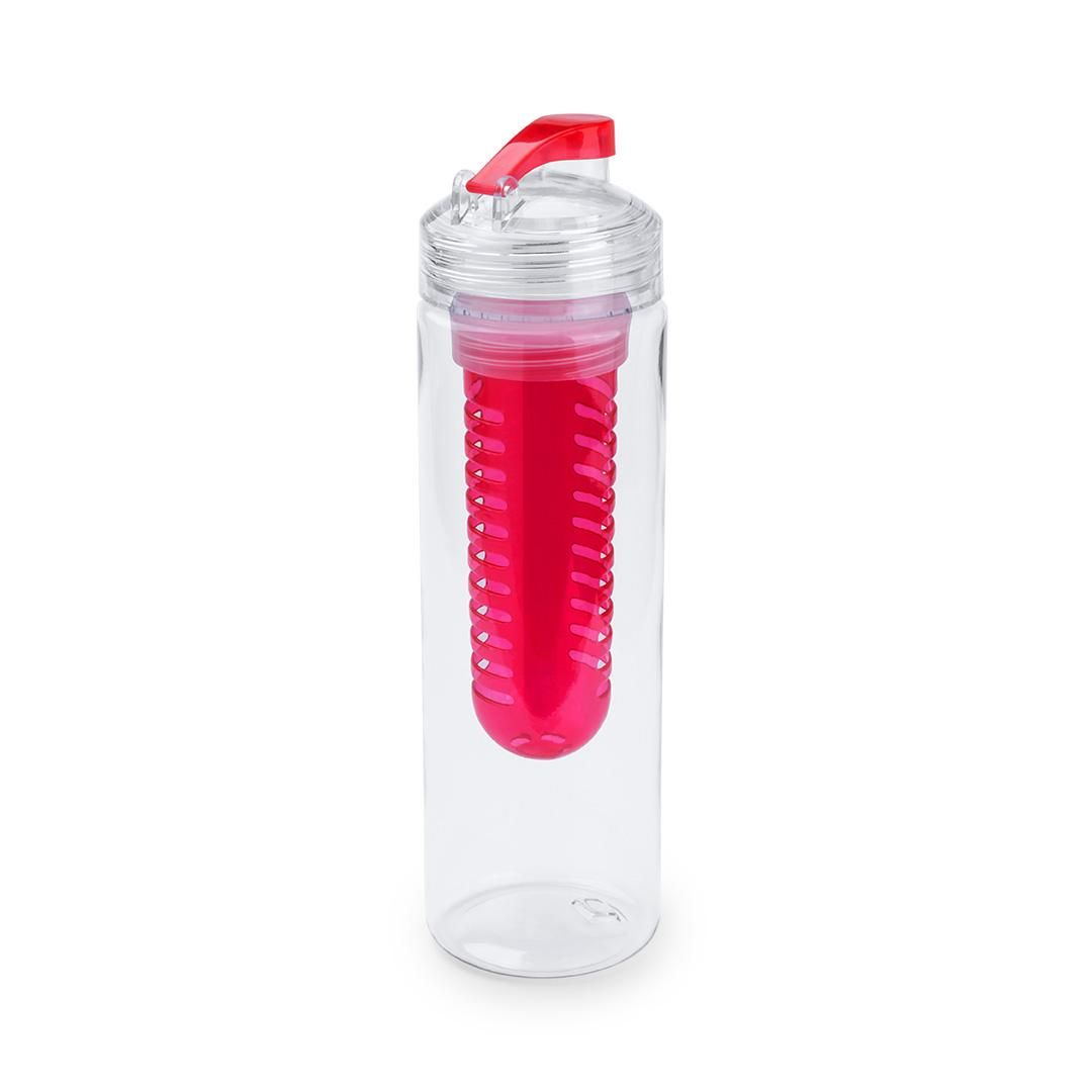 Bidón de 700ml de capacidad en material tritán resistente al calor. Con dosificador de seguridad y tapón a rosca con accesorio enfriador en vivos colores. Presentado en caja individual.
