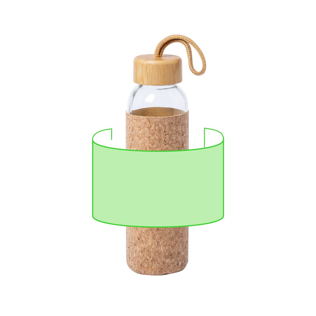 Bidón de línea nature de 500ml de capacidad. Fabricado con cuerpo de cristal y tapón a rosca de bambú, con práctica asa de transporte trenzada en color natural. Incluye funda de corcho natural y viene presentado en caja individual de atractivo diseño eco.
