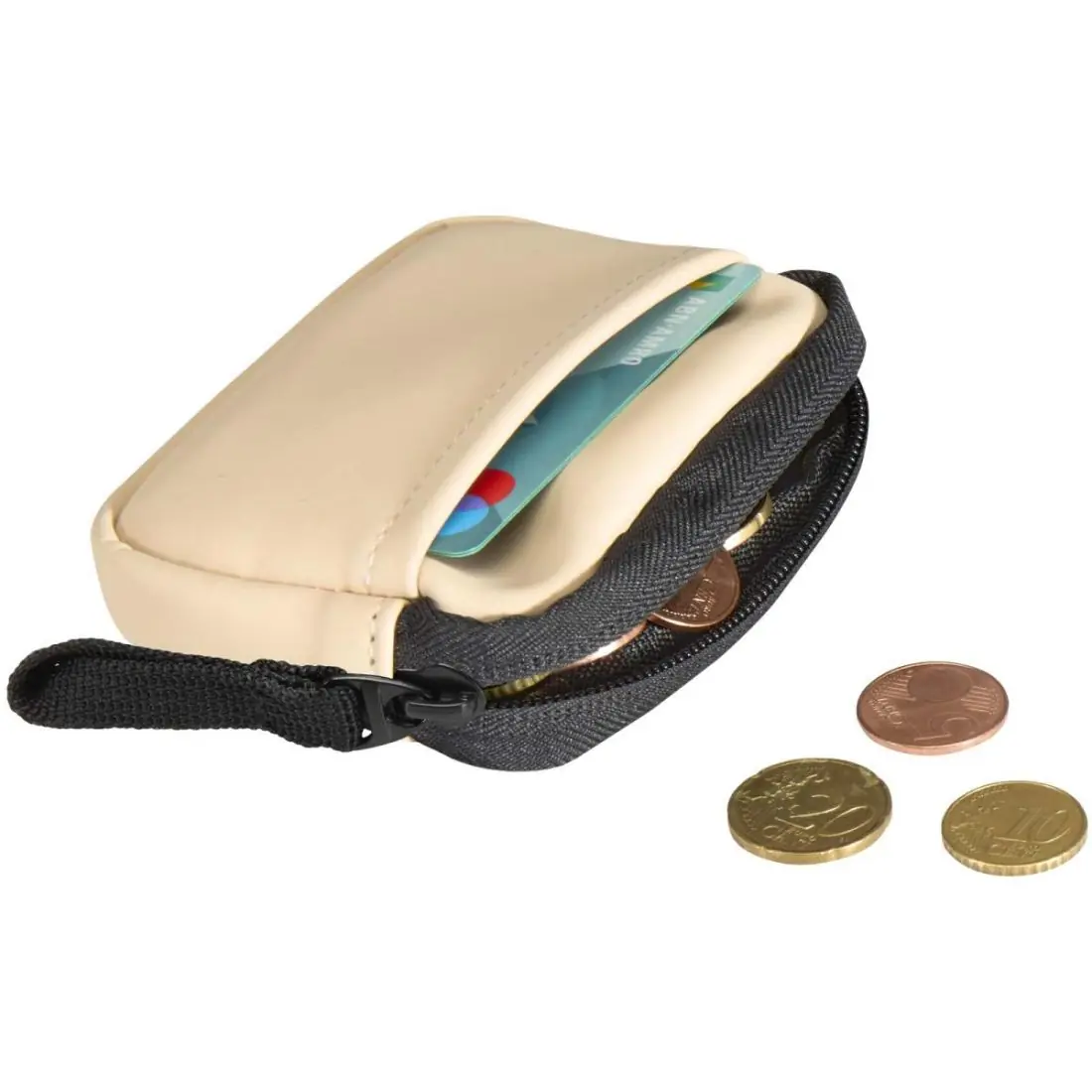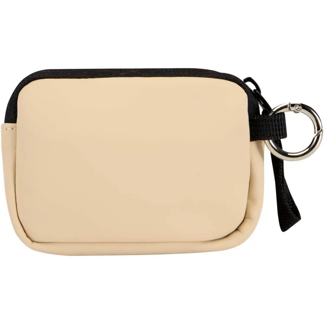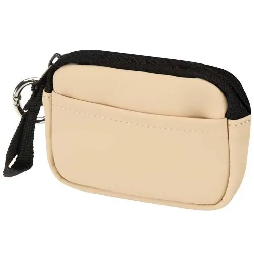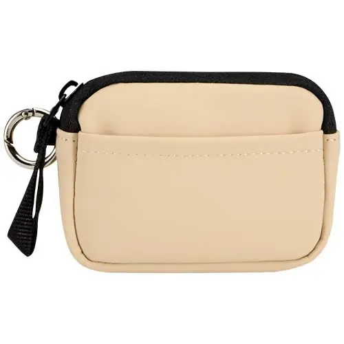 Fabricada en piel de PU reciclado de primera calidad, esta cartera con anilla combina un estilo refinado con la practicidad del día a día. Con un cierre de cremallera seguro y una ranura interior para tarjetas, mantiene tus objetos personales organizados y al alcance de la mano. Puedes engancharla al bolso, a la trabilla del cinturón o a las llaves para tener las manos libres dondequiera que vayas.