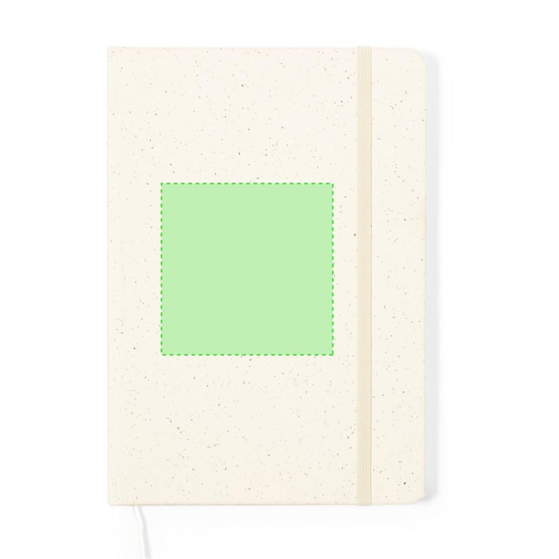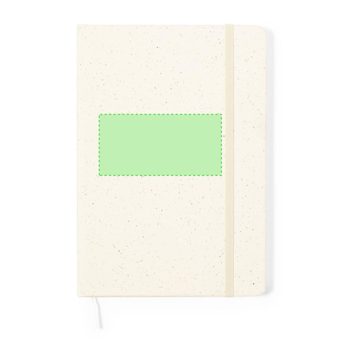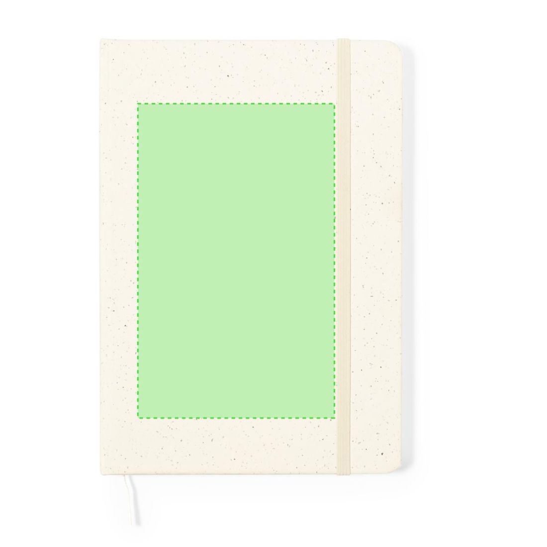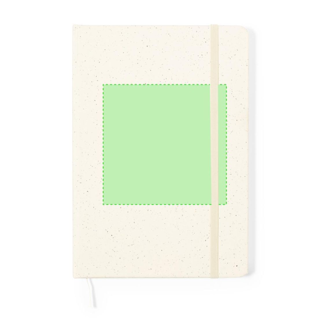 Bloc de notas A5 con tapas duras en resistente cartón reciclado. De 100 hojas blancas lisas y banda elástica para su cierre. Presentado en bolsa...