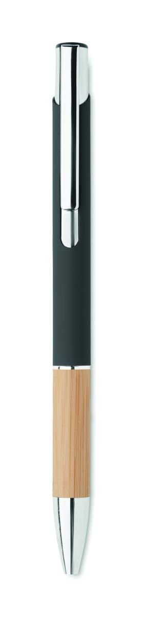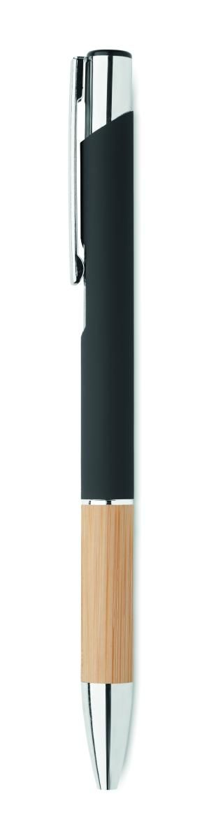 Bolígrafo pulsador de aluminio con empuñadura de bambú. Tinta azul.