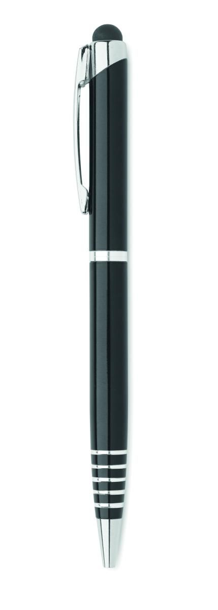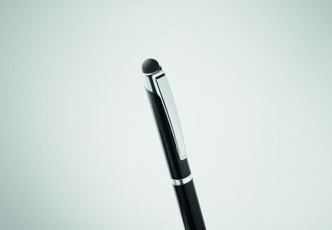 Bolígrafo giratorio de aluminio reciclado con puntero. Tinta azul.
