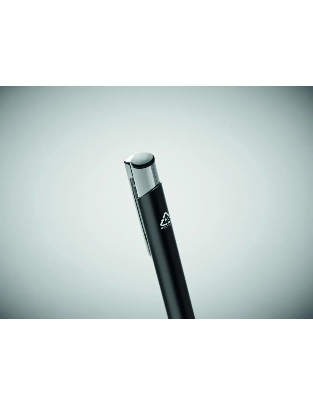 Bolígrafo con pulsador de aluminio reciclado. Tinta azul.