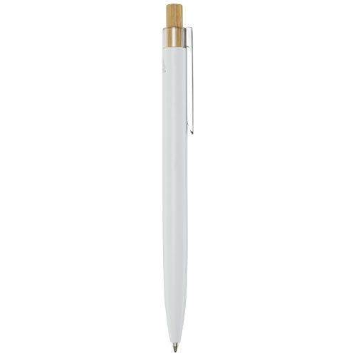El bolígrafo está fabricado con aluminio reciclado, que requiere menos energía que la producción de aluminio a partir de materias primas. También disminuye la cantidad de residuos en los vertederos y ayuda a conservar los recursos naturales con el objetivo de reducir las emisiones de gases de efecto invernadero. El pulsador está hecho de bambú. Color de la tinta: Azul. Longitud de escritura: 800 metros. Tamaño de la punta: 1,00 mm.