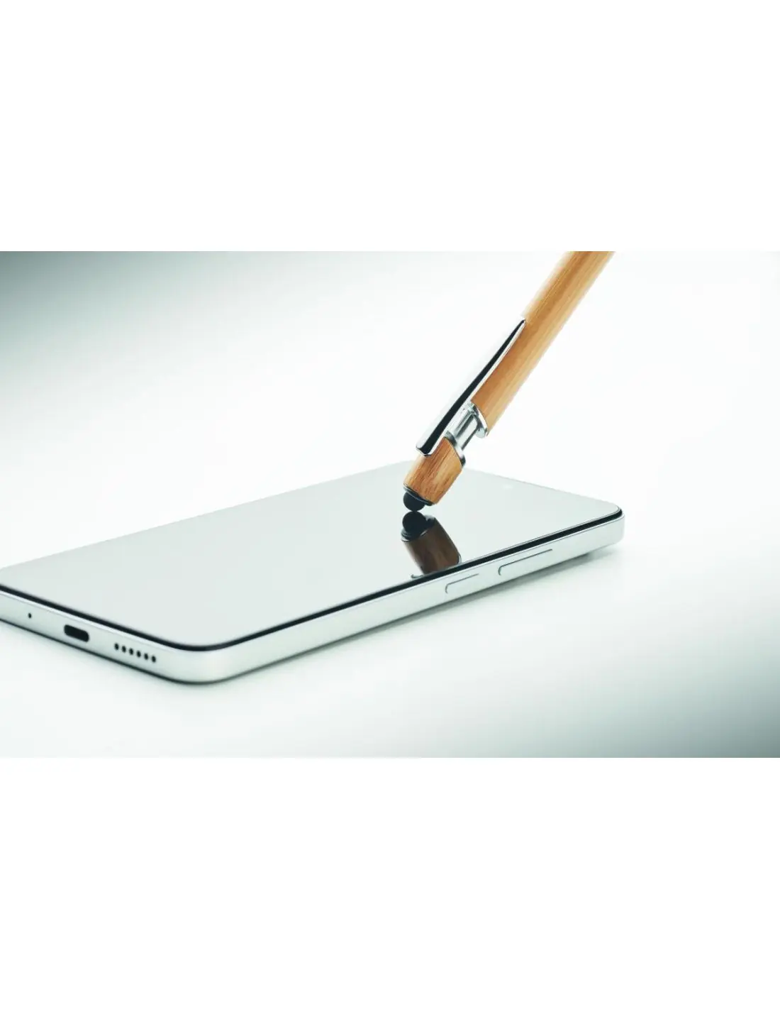 Bolígrafo pulsador con acabado de bambú con puntero táctil. Tinta azul. FSC®-certified | FSC 100%, N5.7, FSC-C213206