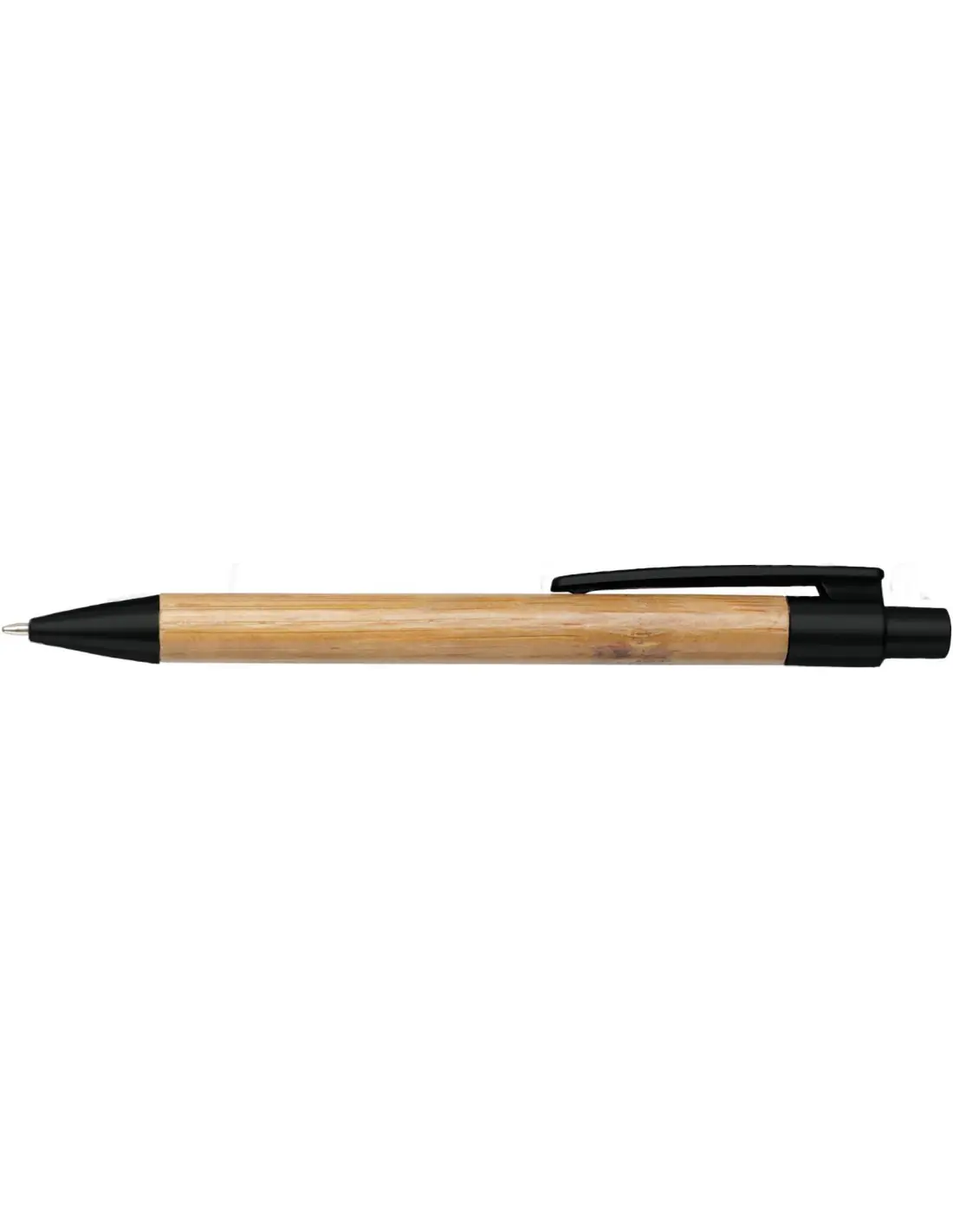 Bolígrafo de bambú con punta y clip de plástico. Tinta azul.
