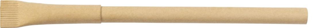 Bolígrafo de cartón reciclado con capuchón. Tinta azul.