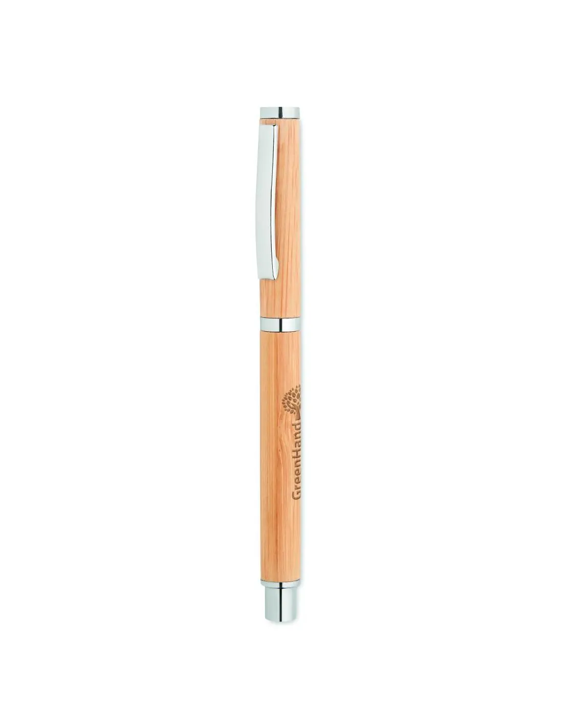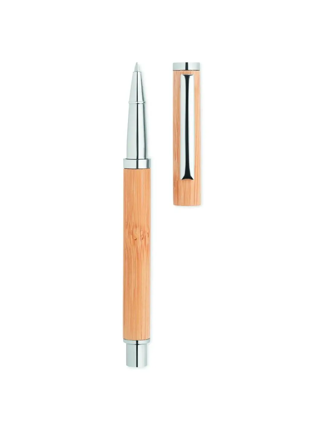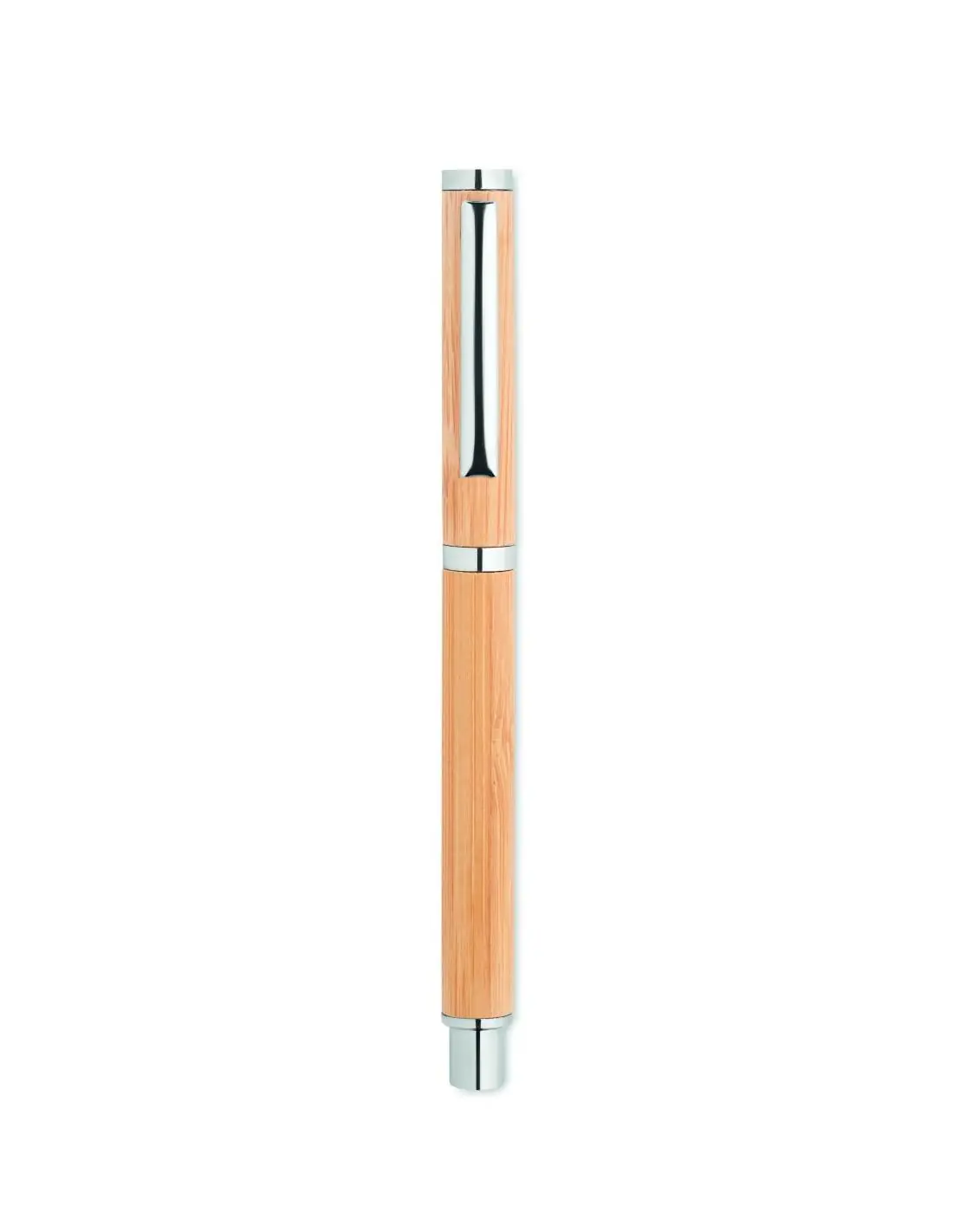 Bolígrafo roller con cuerpo de bambú y accesorios de acero inoxidable. Tinta de gel azul. Tome sus notas durante las reuniones importantes con este roller con tinta de gel. El material de bambú sostenible y natural le da un aspecto moderno y elegante. El bambú es un material natural, el color del articulo, la medida y la impresión sobre el puede variar. FSC®-certified | FSC 100%, N10, FSC-C213206