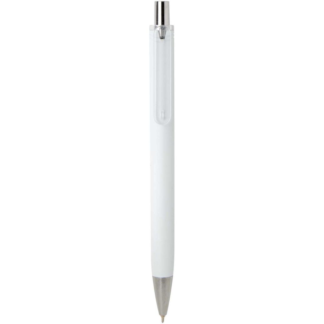 El bolígrafo con acabado metálico combina la funcionalidad cotidiana con un aspecto elegante. Fabricado en plástico ABS reciclado con certificado RCS, presenta un acabado pulverizado de metal brillante con detalles en cromo pulido. Su suave mecanismo a presión y el recambio de tinta de semigel garantizan una experiencia de escritura cómoda y fluida. Color de la tinta del bolígrafo: negro. Longitud de escritura: 500 m. Tamaño de la punta: 0,7 mm.