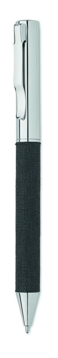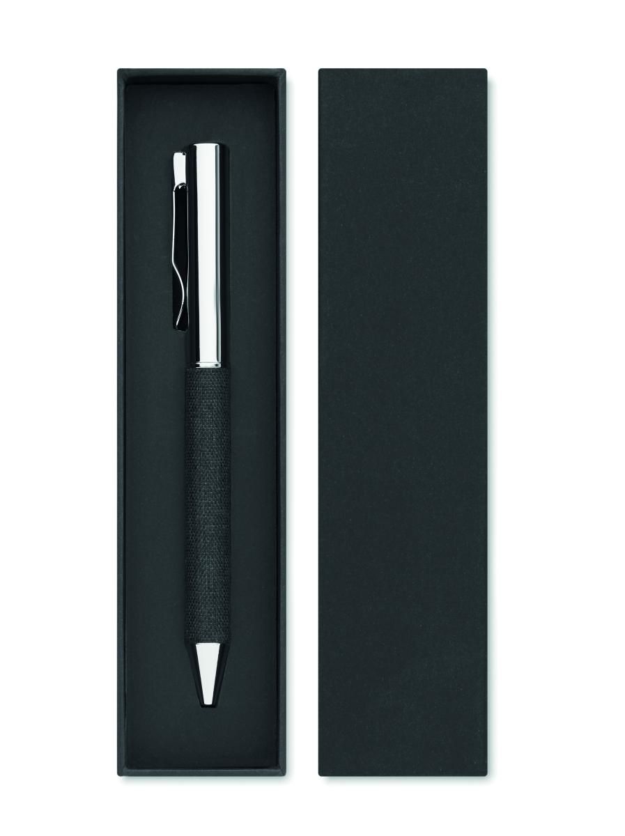 Bolígrafo giratorio de metal con detalle de poliéster RPET presentado en estuche de regalo. Tinta azul.