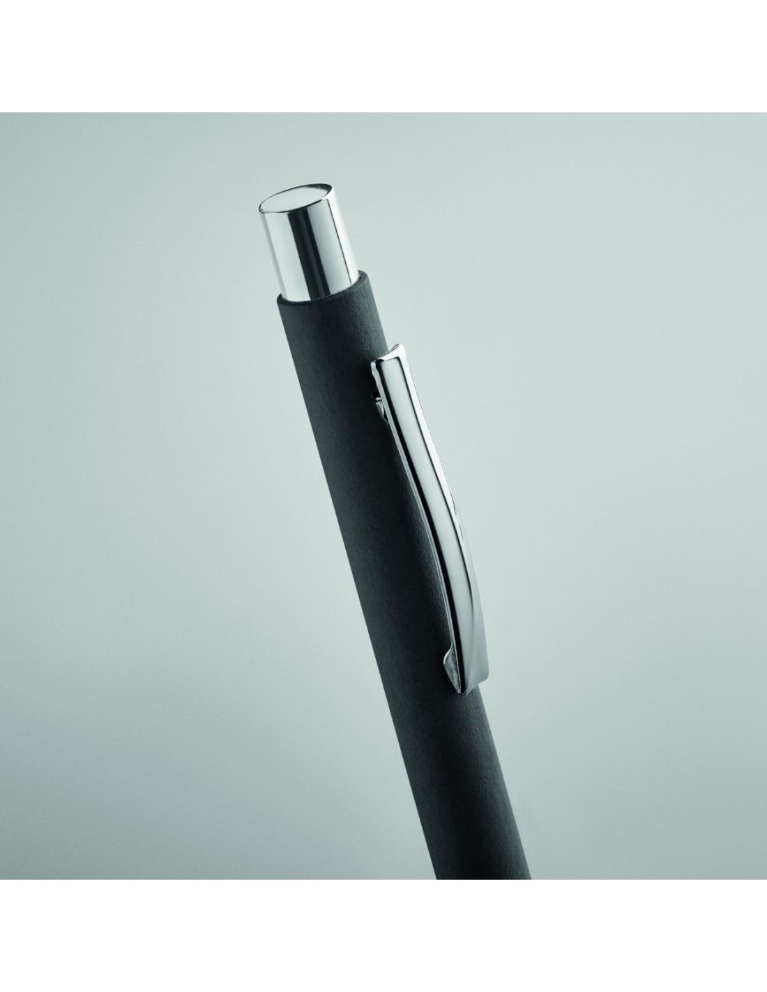 Bolígrafo con pulsador en papel reciclado y clip metálico y accesorios de plástico. Tinta azul.. FSC®-certified | FSC RECYCLED, P9, FSC-C213206