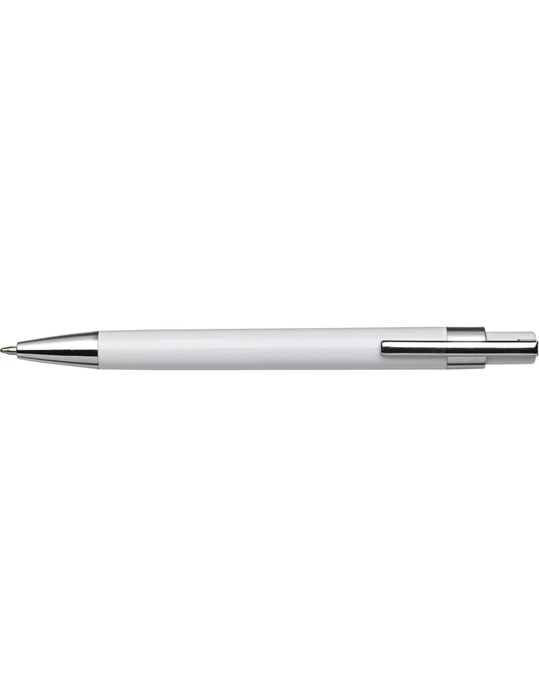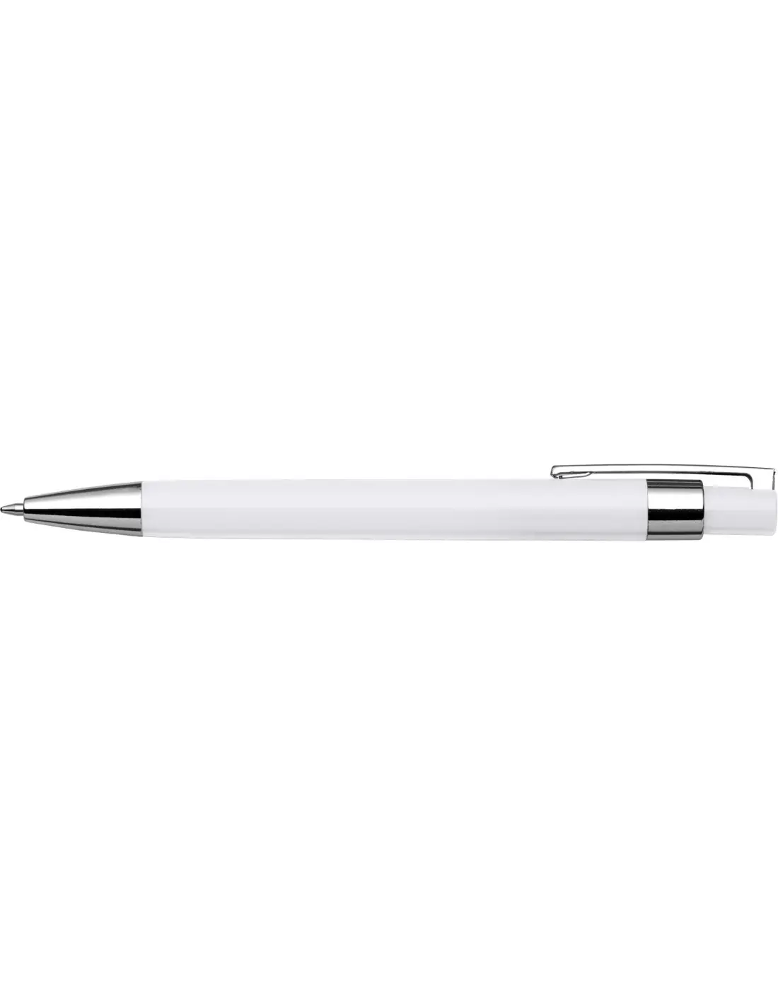 Bolígrafo de plástico con clip de metal. Tinta negra.