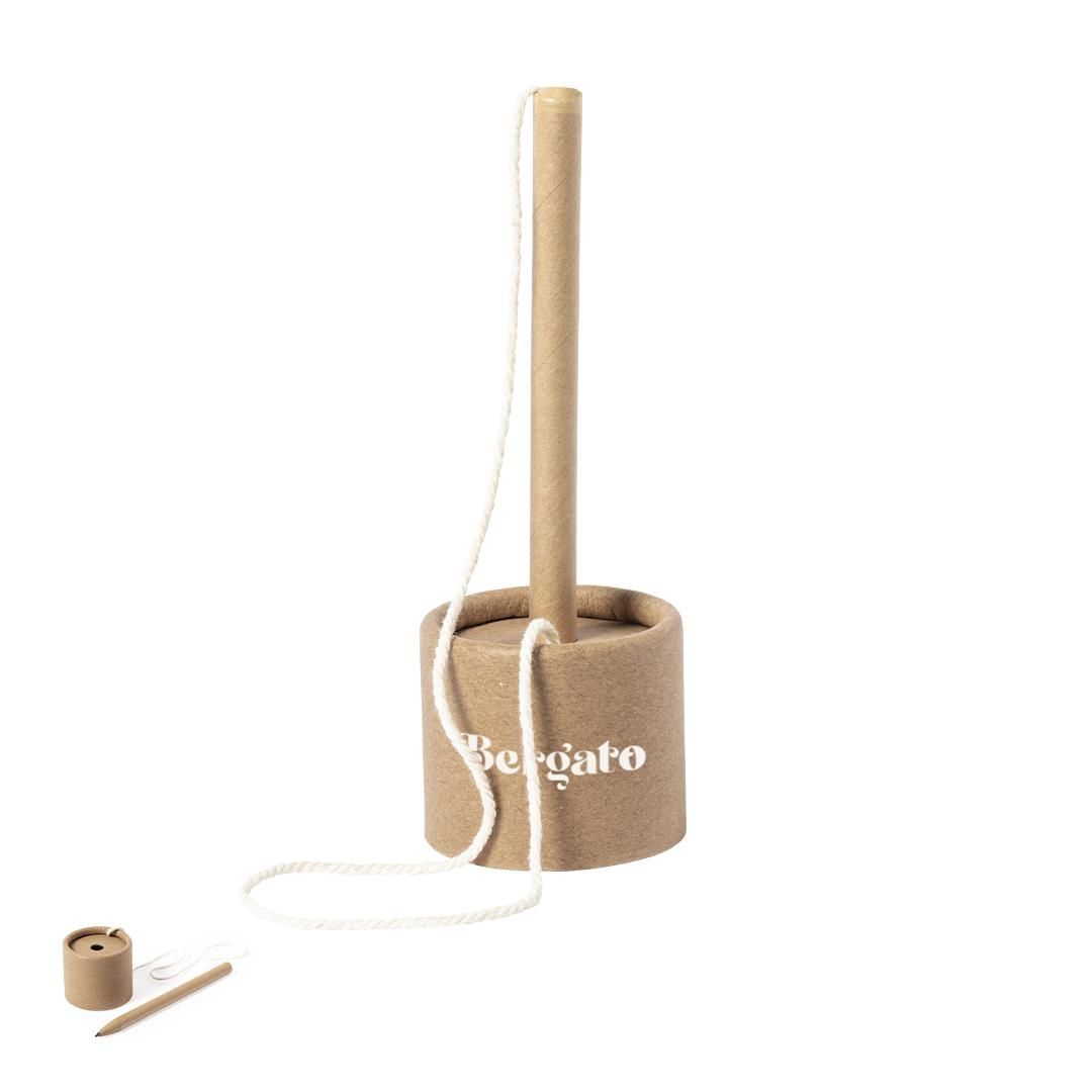 Bolígrafo con soporte de línea nature. Fabricado en cartón reciclado, con cuerda de sujeción y base con adhesivo 3M, de fijación extra fuerte y libre...
