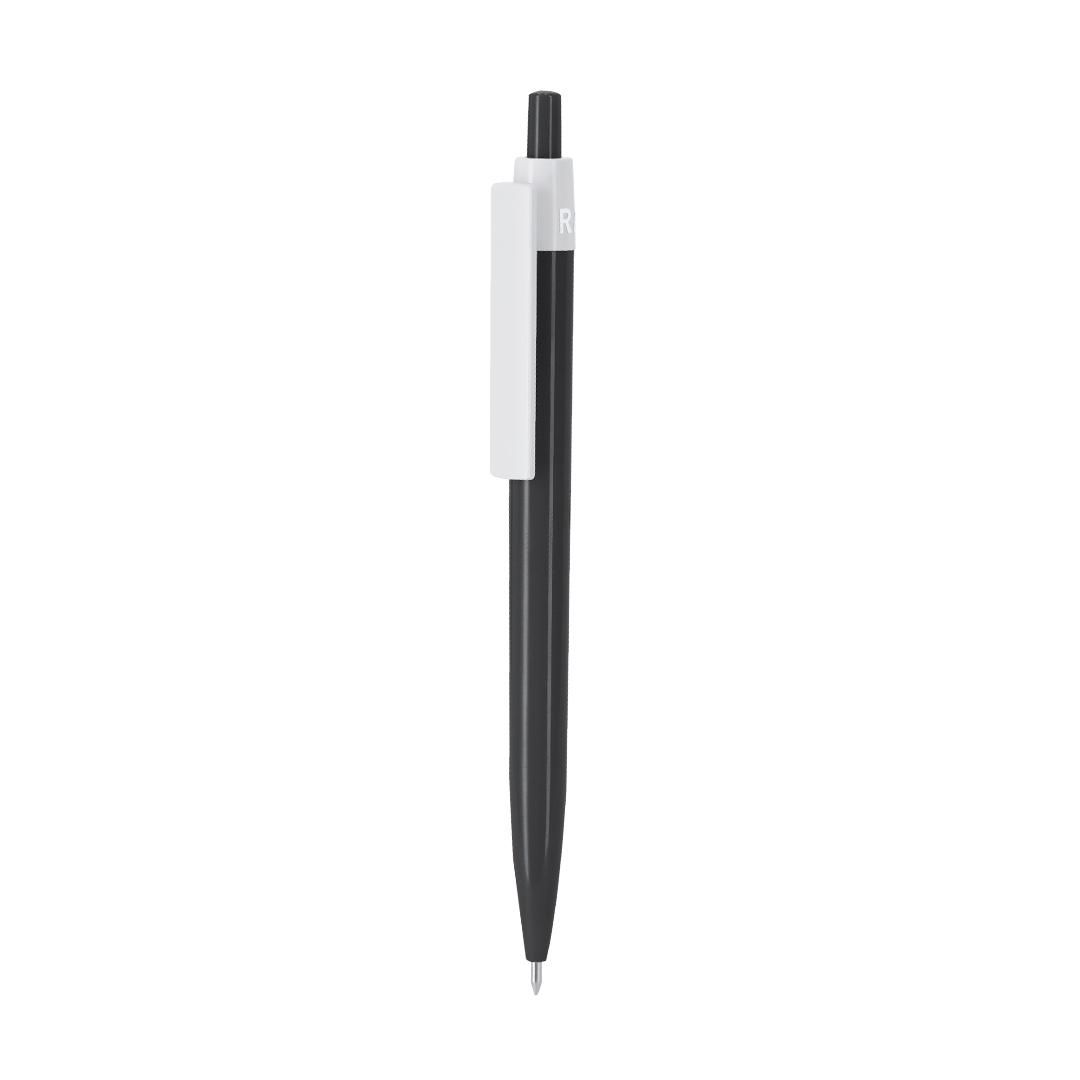 Bolígrafo fabricado en RABS. Clip especial diseñado para impresión digital, de mecanismo pulsador y en tinta azul. Distintivo RABS en la parte superior del bolígrafo.