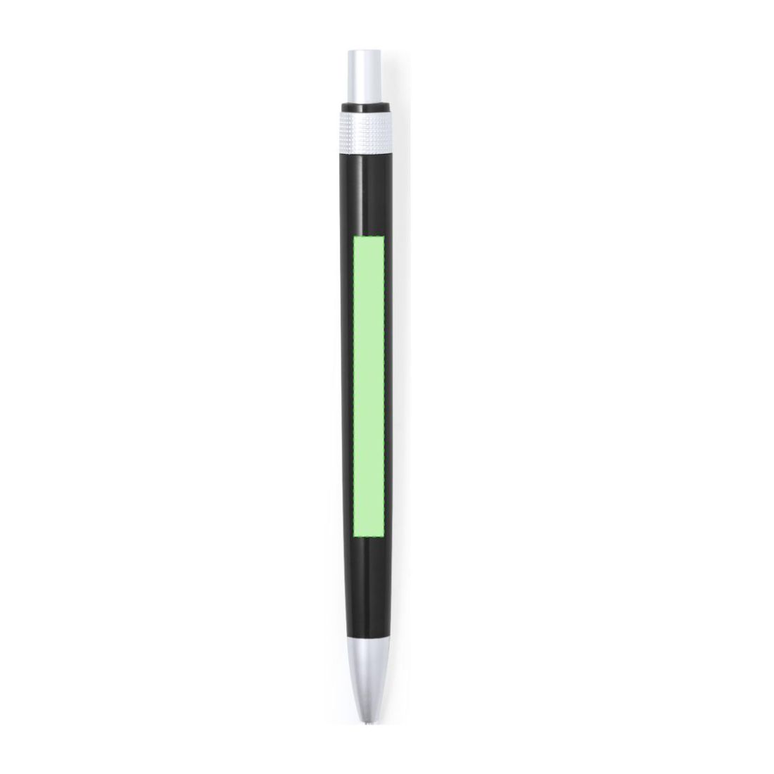 Bolígrafo de mecanismo pulsador de atrevido diseño bicolor con accesorios en gris plateado y cuerpo de suave acabado en vivos colores. Con original clip a juego. Tinta azul.