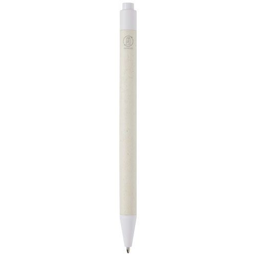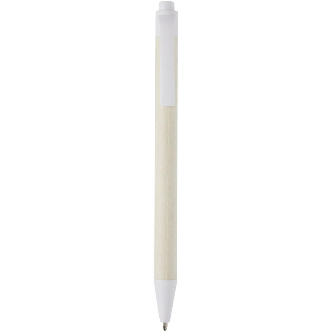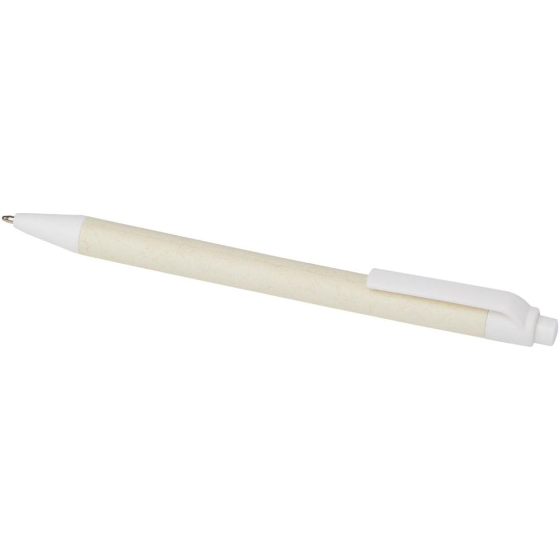 Bolígrafo con mecanismo de presión y cuerpo fabricado con cartones de leche reciclados (hasta un 70 %). El botón, la pinza y la punta están hechos de plástico PLA. Los cartones de leche usados se recogen, clasifican, procesan y convierten en papel, por lo que los residuos se transforman en un producto útil.