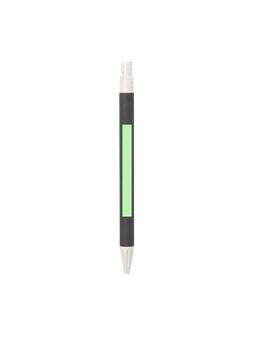 Bolígrafo con mecanismo pulsador de línea nature. Cuerpo en cartón reciclado, con accesorios en caña de trigo, para así fomentar la utilización de materias primas naturales y reducir las emisiones contaminantes. Disponible en variada gama de colores y en tinta azul.