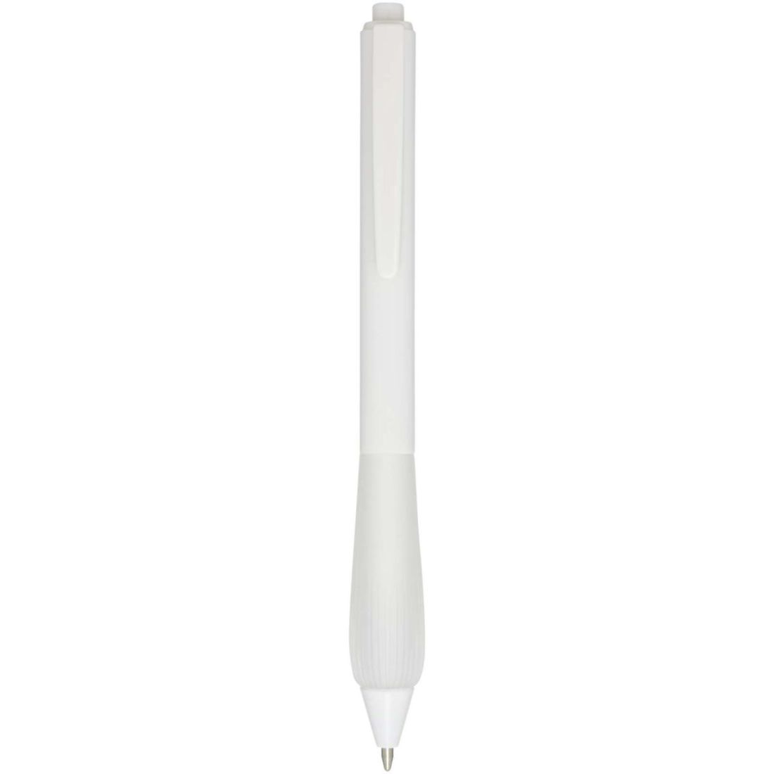 Bolígrafo de plástico reciclado con cuerpo recubierto de goma y empuñadura de TPR. Color de la tinta: Azul. Longitud de escritura: 1000 metros. Tamaño del plumín: 1,0 mm.