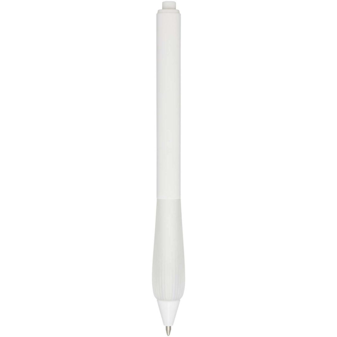 Bolígrafo de plástico reciclado con cuerpo recubierto de goma y empuñadura de TPR. Color de la tinta: Negro. Longitud de escritura: 1000 metros. Tamaño del plumín: 1,0 mm.