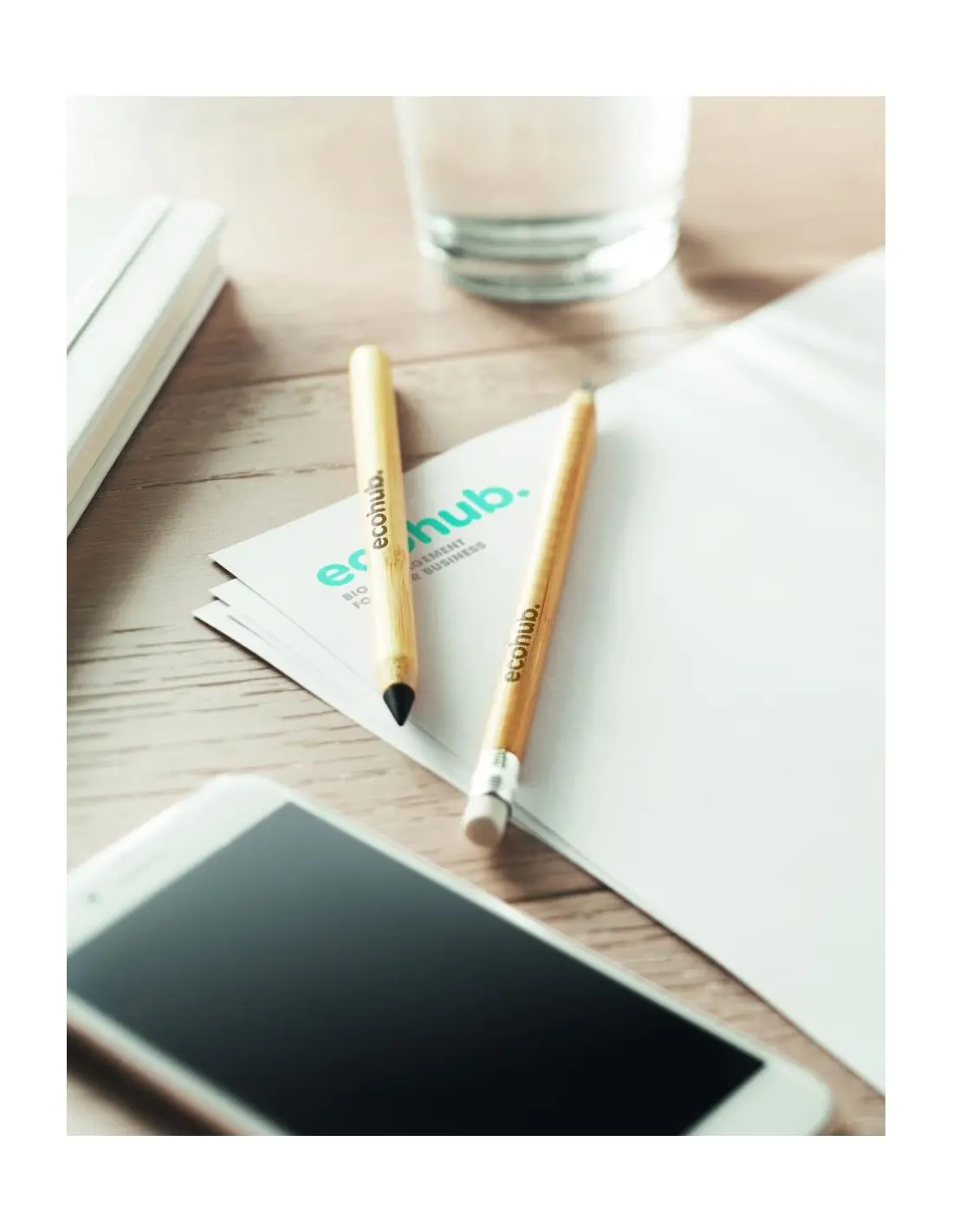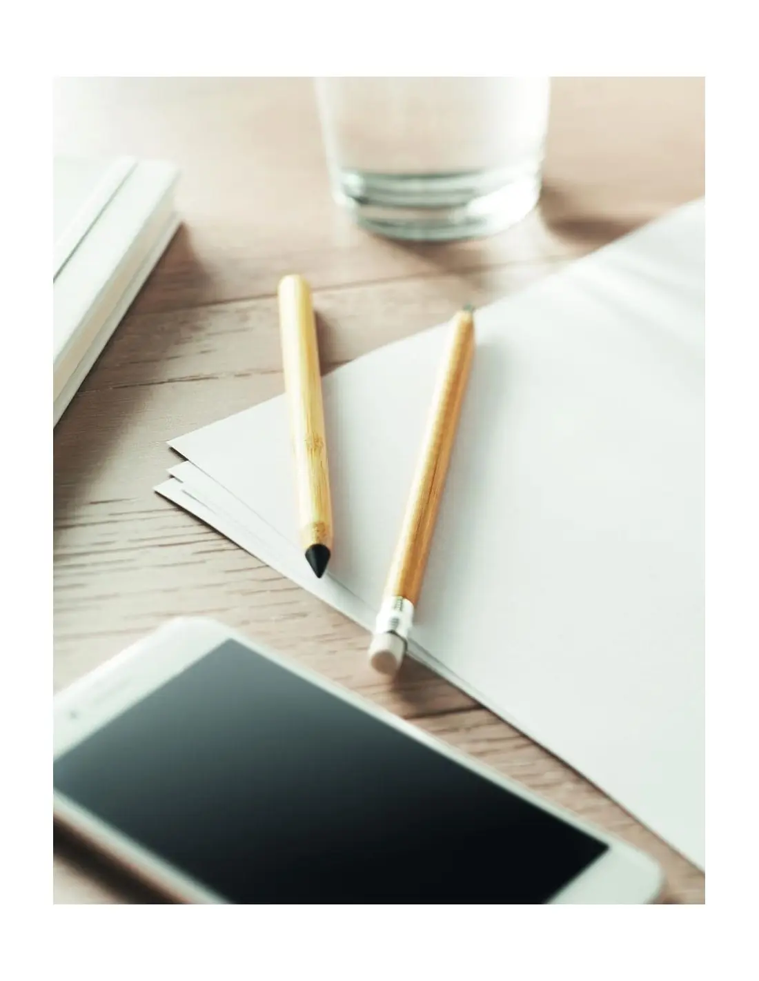 Bolígrafo de bambú sin tinta y de larga duración. Este bolígrafo escribe con punta de grafito, por lo que tiene una vida útil más larga.