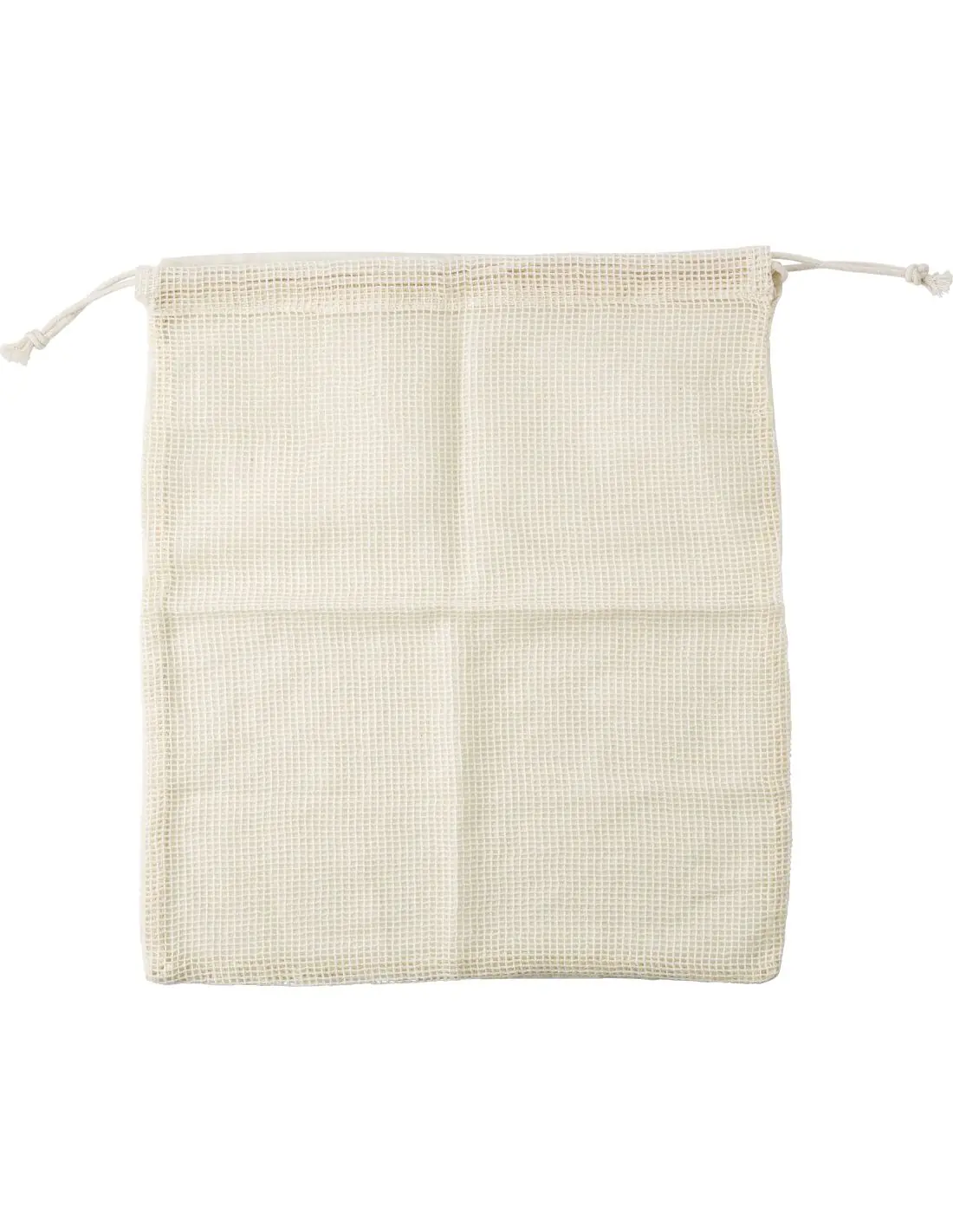 Bolsa 100% algodón orgánico para frutas y verduras, con rejilla en un lateral y cierre con cordón.