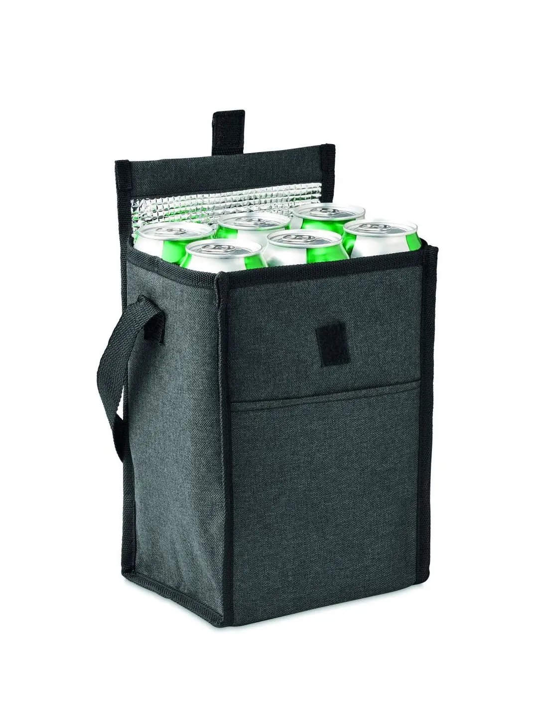 Bolsa aislante para alimentos en RPET 600D con bolsillo frontal. Capacidad de 3L. Material aislante: espuma de PE de 2 mm con recubrimiento de alum…