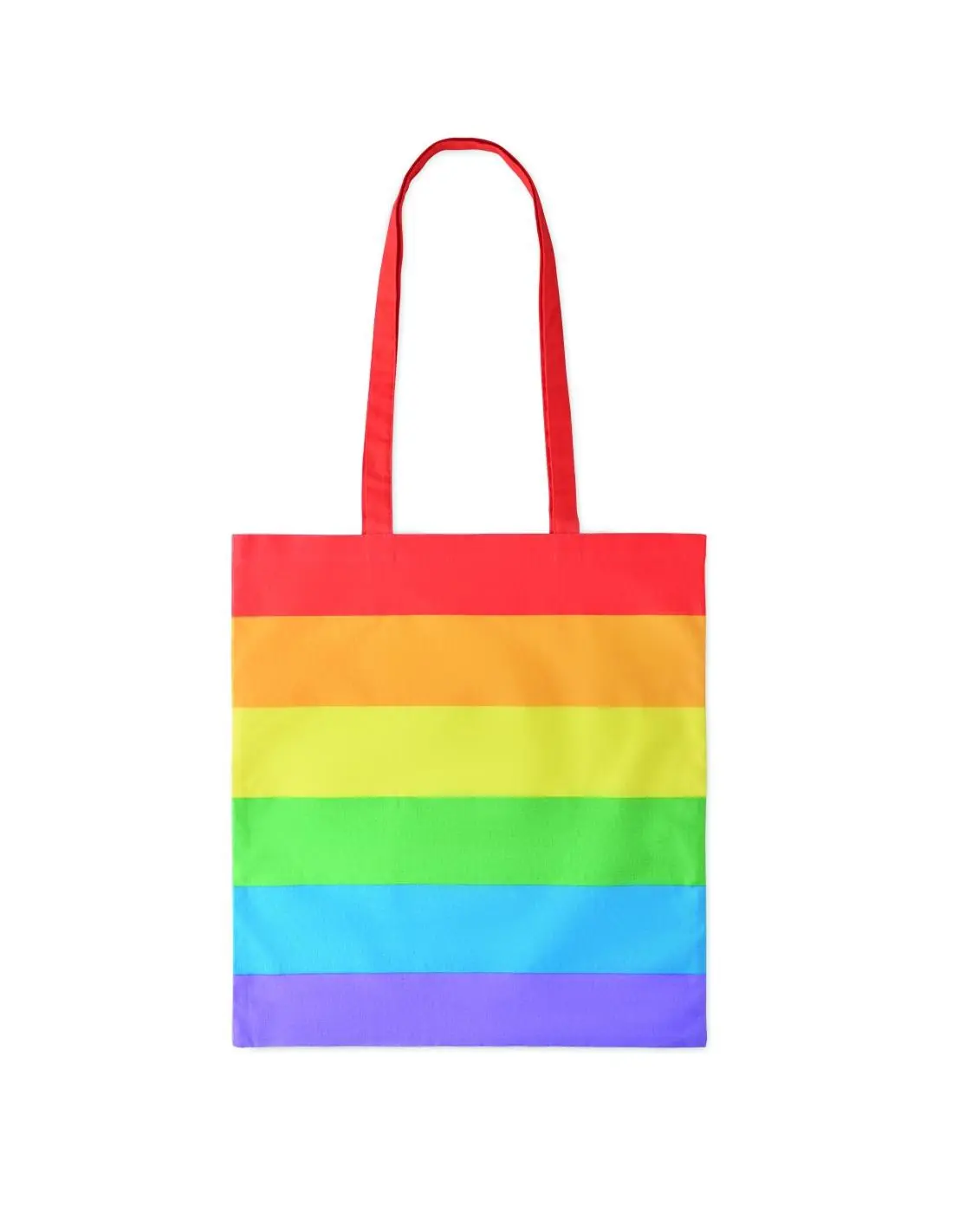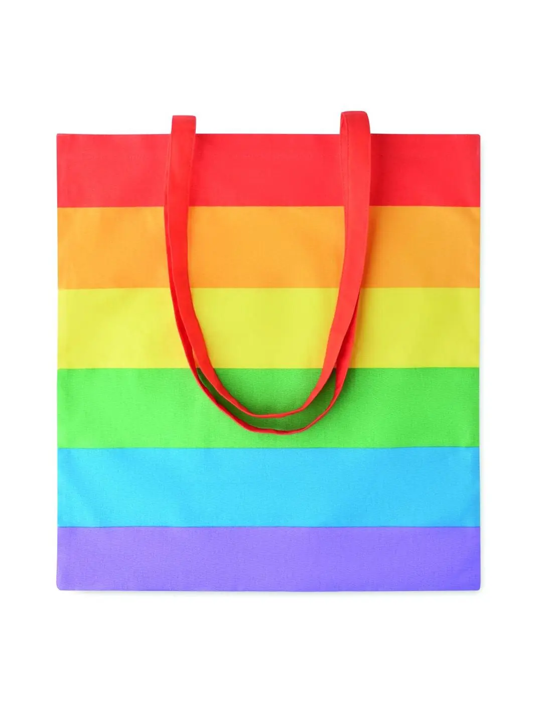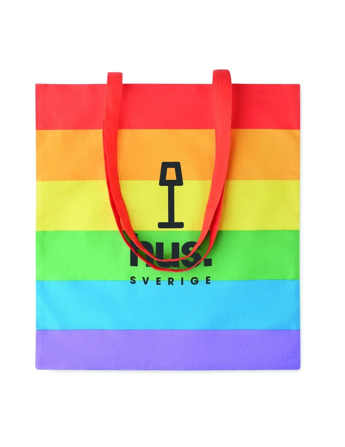 Bolsa Rainbow de la compra con asas largas. Algodón 200 gr/m². Este producto cuenta con la certificación OEKO-TEX® STANDARD 100.