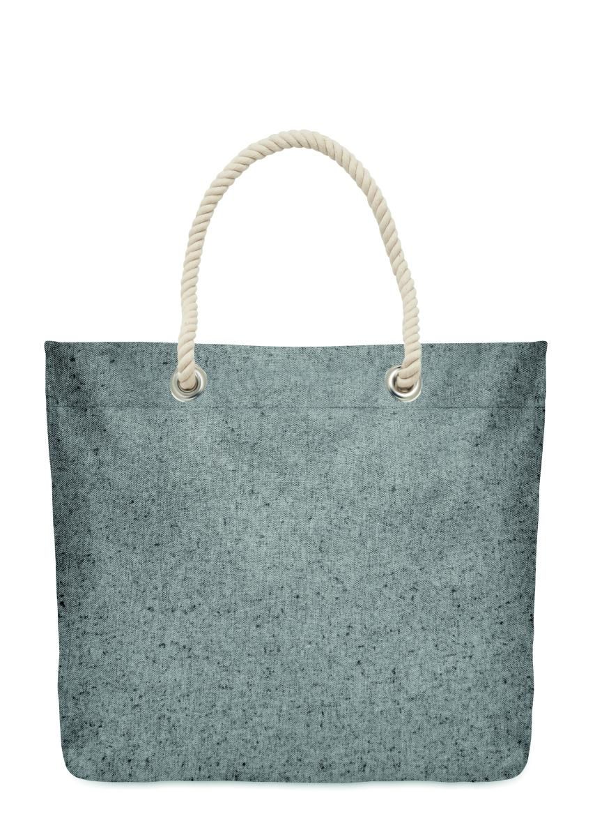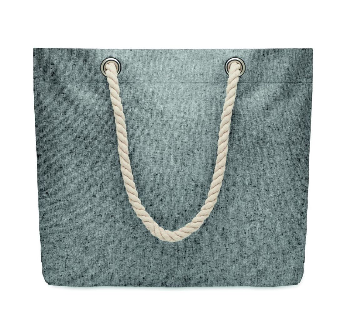 Bolsa de playa o de compra de algodón reciclado (80% algodón reciclado, 20% algodón normal)con asas de cuerda. 220 gr/m².